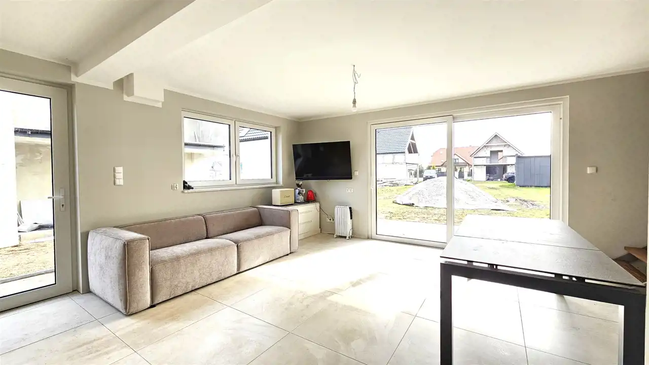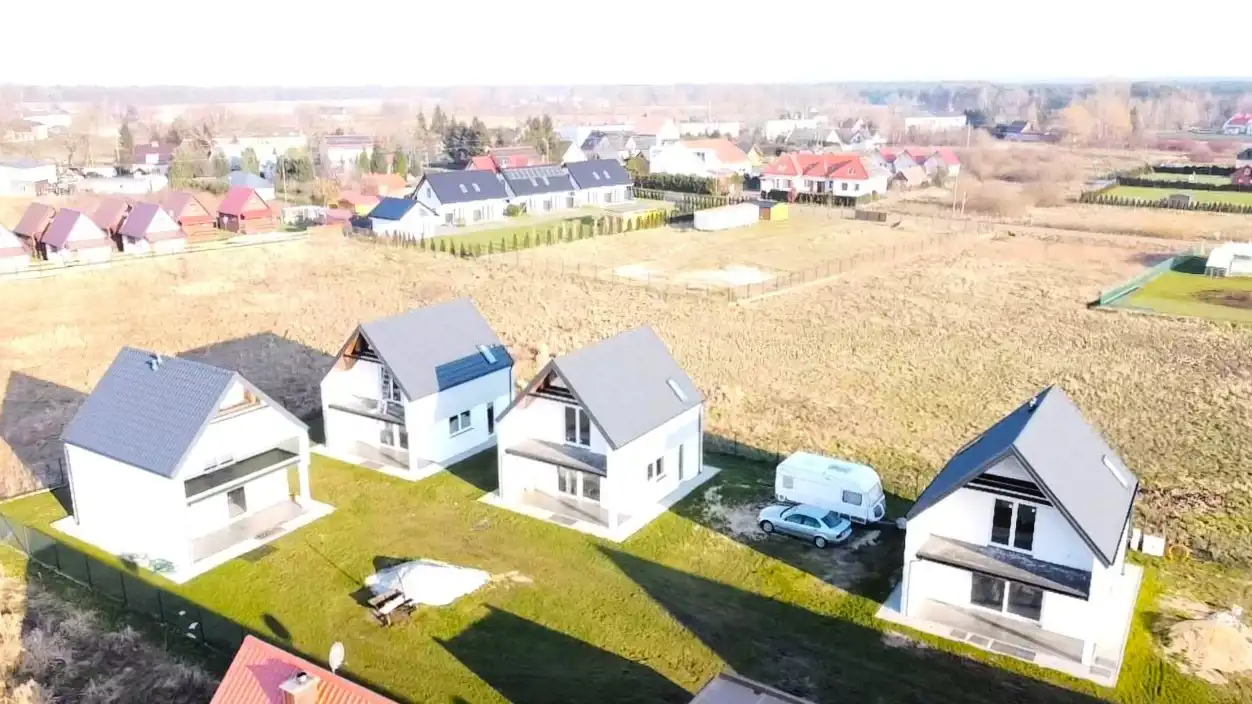 Każdy wolnostojący dom o powierzchni użytkowej 72m2, usytuowany jest na przynależnej działce o metrażu ok. 300m2.