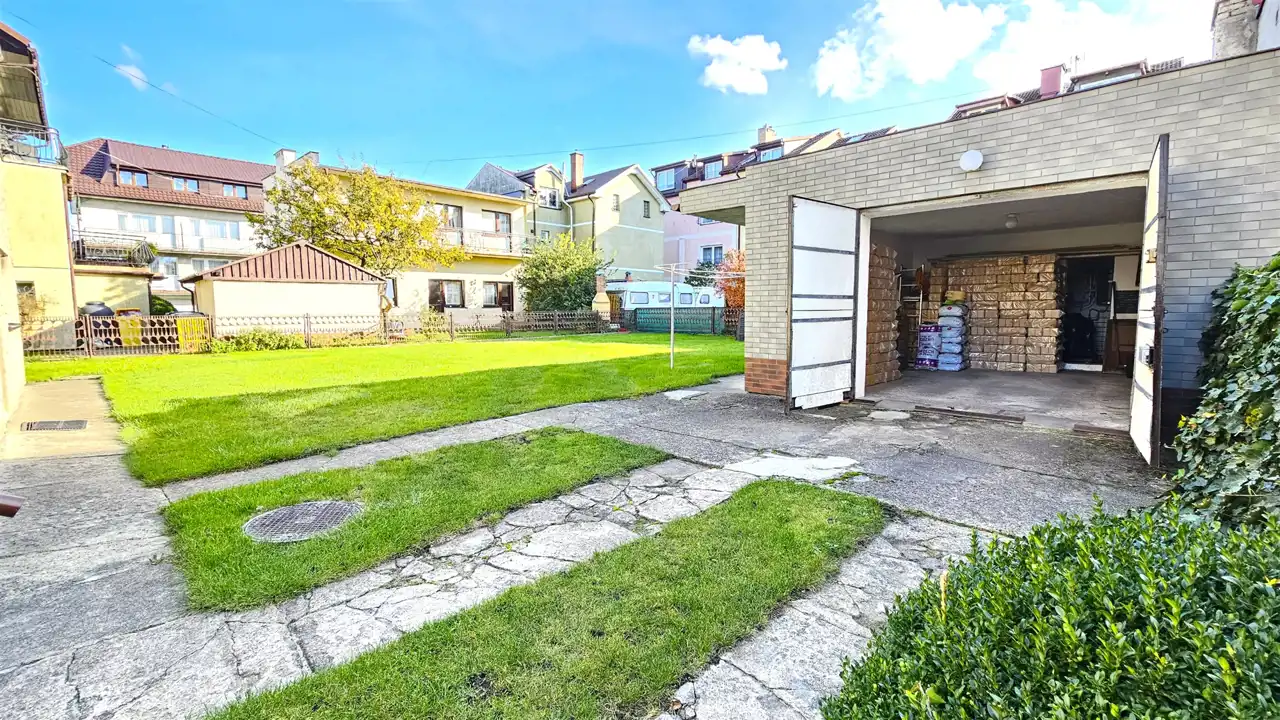 Na terenie posesji znajduje się wspomniany garaż oraz budynek gospodarczy o powierzchni 44m2, w którym mieści się dodatkowy dwuosobowy pokój (10m2) oraz łazienka.