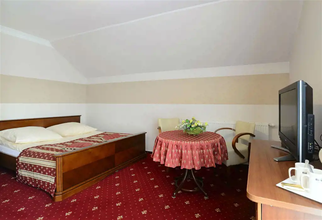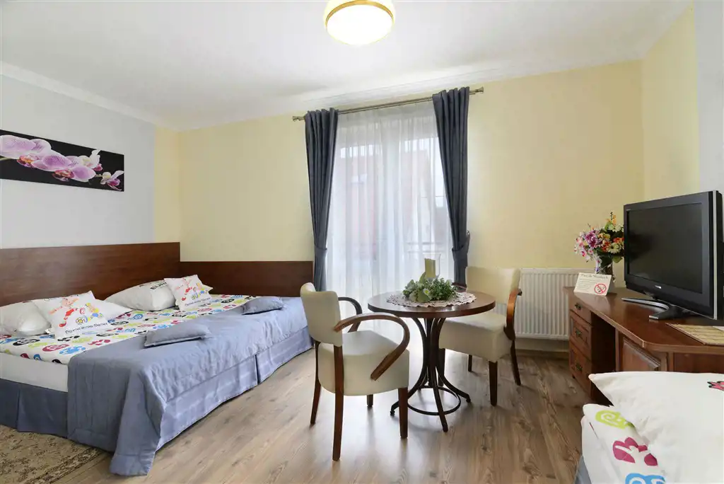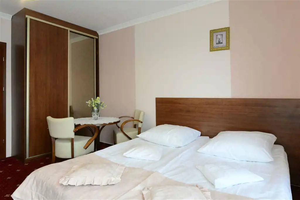 14 doskonale urządzonych pokoi z łazienkami i TV. 6 - 2 osobowych, 4 - 3 osobowe, 4 - 4 osobowe.