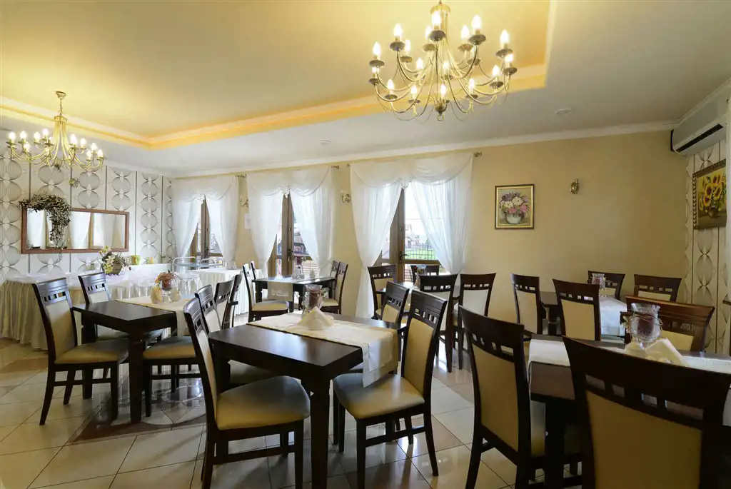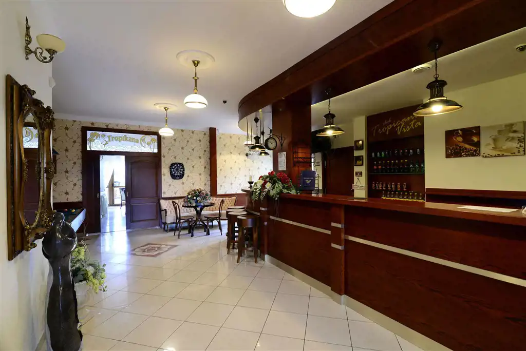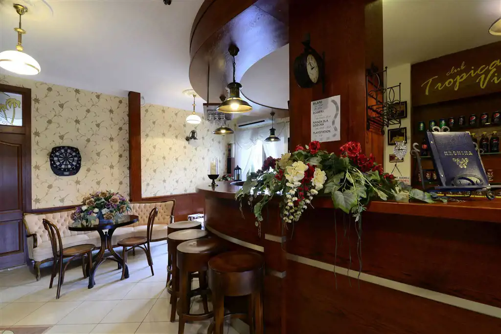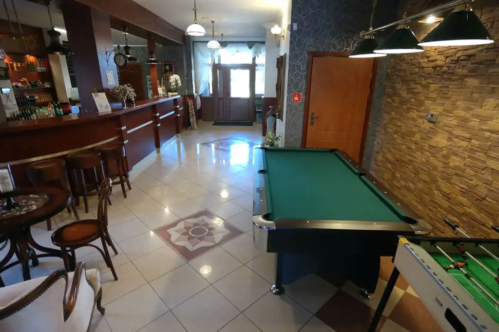 Klimatyzowany hol, restauracja na 40 osób, recepcja. Bilard w holu.