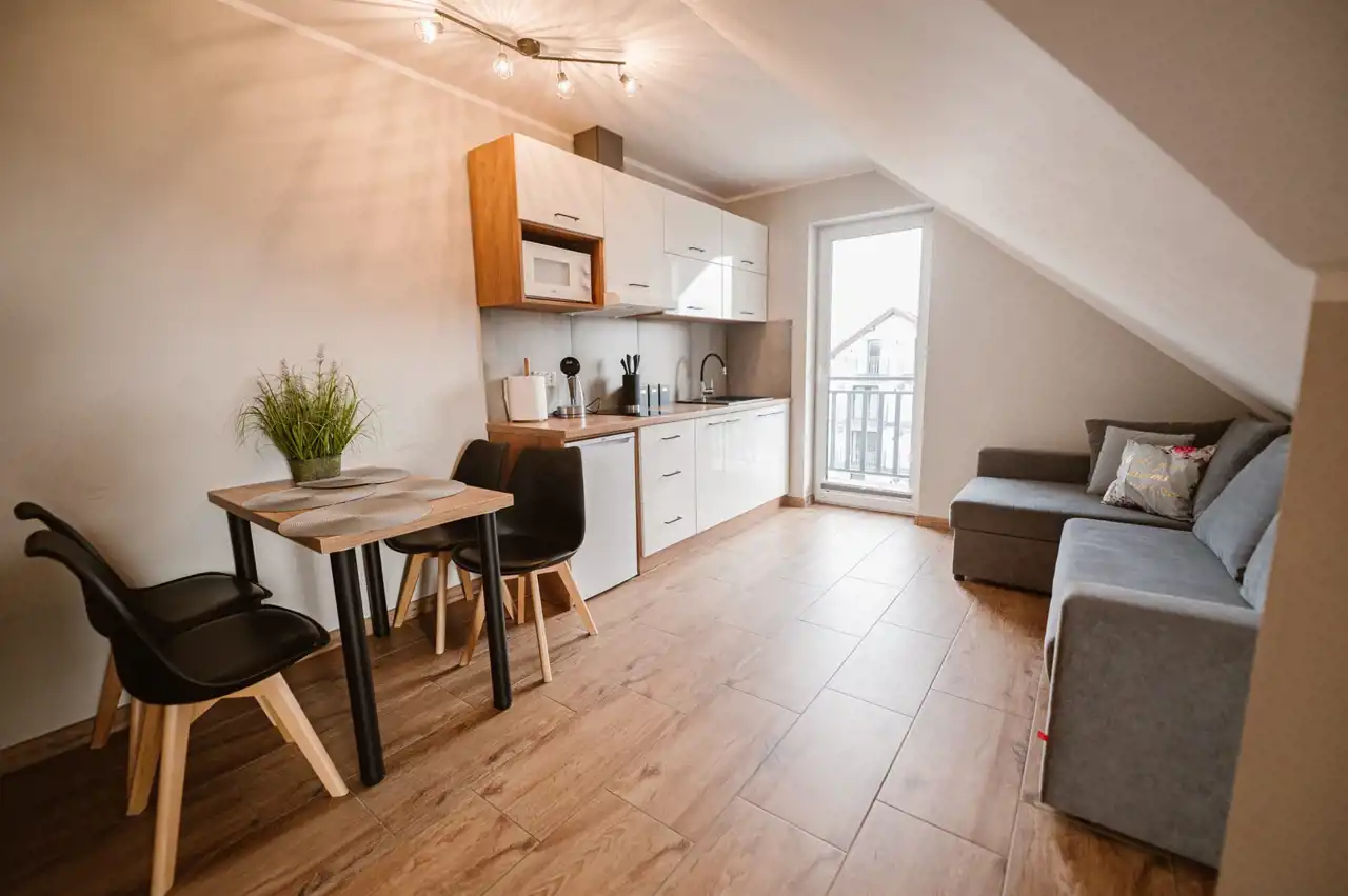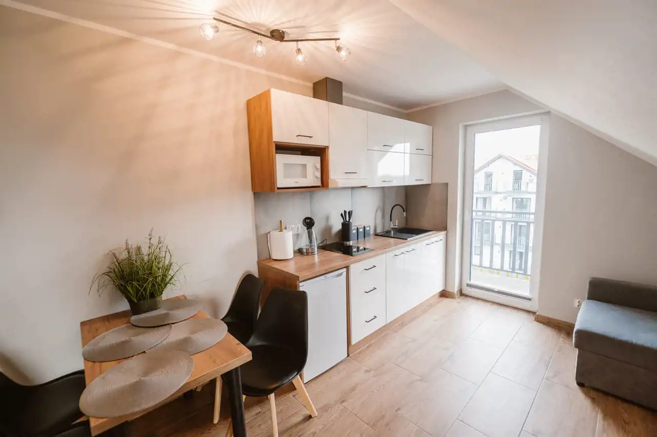 Atrakcyjny apartament z balkonem i przynależnym miejscem parkingowym, położony w malowniczej, nadmorskiej miejscowości Łeba, w spokojnej okolicy przy al. Św. Jakuba (opodal kościoła św. Jakuba i sklepu "POLOmarket") o powierzchni użytkowej 22m2. Lokal usytuowany jest na trzecim piętrze trzypiętrowego apartamentowca, wykonany nowoczesną technologią, wszystkie materiały posiadają niezbędne atesty i gwarancję (co daje bardzo dużą energooszczędność, ciepło). Mieszkanie nie wymaga żadnego wkładu finansowego, można od razu zamieszkać. Składa się z pokoju dziennego z zabudowanym, wyposażonym aneksem kuchennym, z wyjściami na dwa balkony oraz łazienki z WC i prysznicem. Koło nieruchomości znajduje się wspomniane miejsce parkingowe, a w pobliżu znajduje się cała infrastruktura – budynki użyteczności publicznej i instytucje usługowo-handlowe, szkoły, sklepy, markety wielkopowierzchniowe i kościoły. Całość prezentuje się bardzo dobrze. Ze względu na standard oraz świetne położenie (15 min spacerem do morza) oferta jest godna polecenia.ZACHĘCAMY RÓWNIEŻ DO SKORZYSTANIA Z NASZEGO DORADZTWA KREDYTOWEGO.