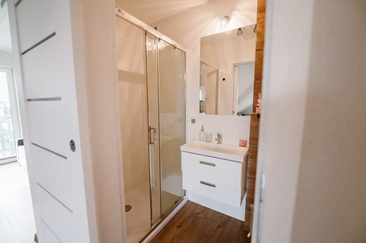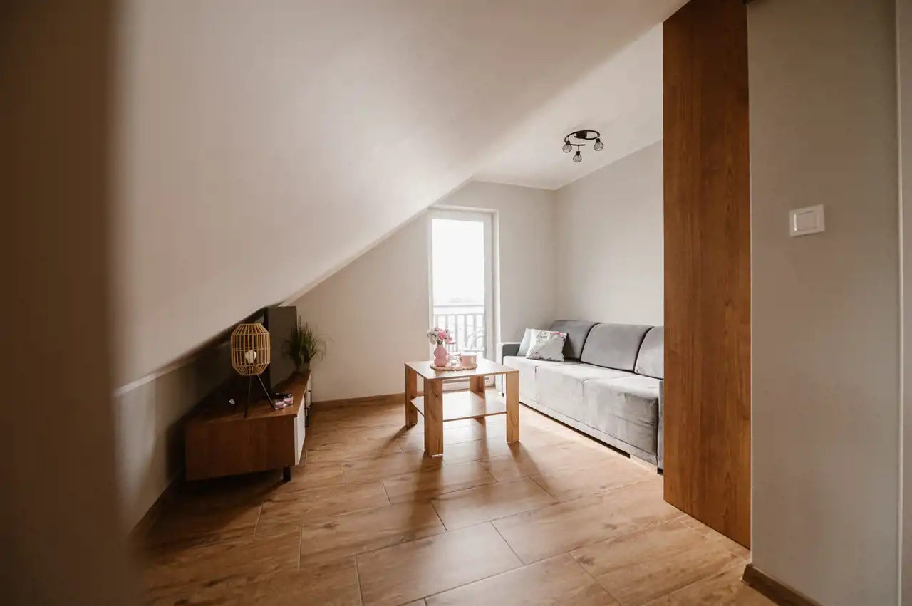 Atrakcyjny apartament z balkonem i przynależnym miejscem parkingowym, położony w malowniczej, nadmorskiej miejscowości Łeba, w spokojnej okolicy przy al. Św. Jakuba (opodal kościoła św. Jakuba i sklepu "POLOmarket") o powierzchni użytkowej 22m2. Lokal usytuowany jest na trzecim piętrze trzypiętrowego apartamentowca, wykonany nowoczesną technologią, wszystkie materiały posiadają niezbędne atesty i gwarancję (co daje bardzo dużą energooszczędność, ciepło). Mieszkanie nie wymaga żadnego wkładu finansowego, można od razu zamieszkać. Składa się z pokoju dziennego z zabudowanym, wyposażonym aneksem kuchennym, z wyjściami na dwa balkony oraz łazienki z WC i prysznicem. Koło nieruchomości znajduje się wspomniane miejsce parkingowe, a w pobliżu znajduje się cała infrastruktura – budynki użyteczności publicznej i instytucje usługowo-handlowe, szkoły, sklepy, markety wielkopowierzchniowe i kościoły. Całość prezentuje się bardzo dobrze. Ze względu na standard oraz świetne położenie (15 min spacerem do morza) oferta jest godna polecenia.