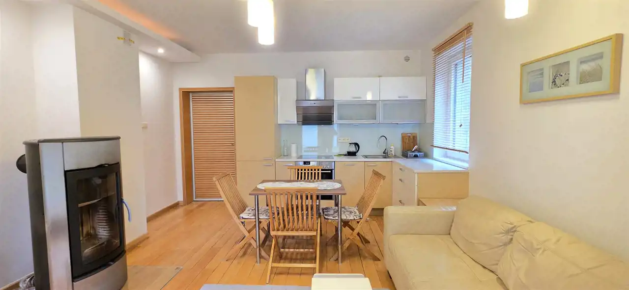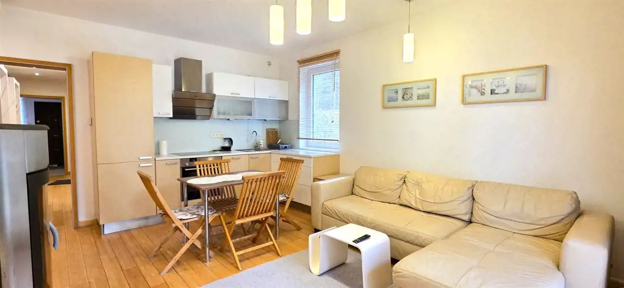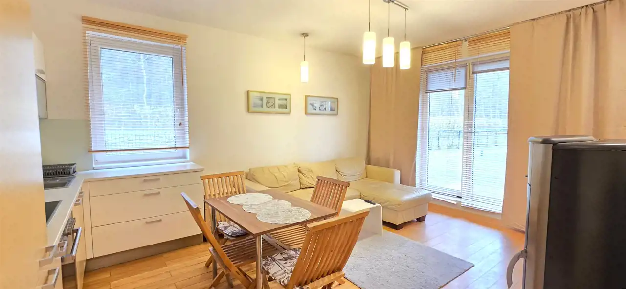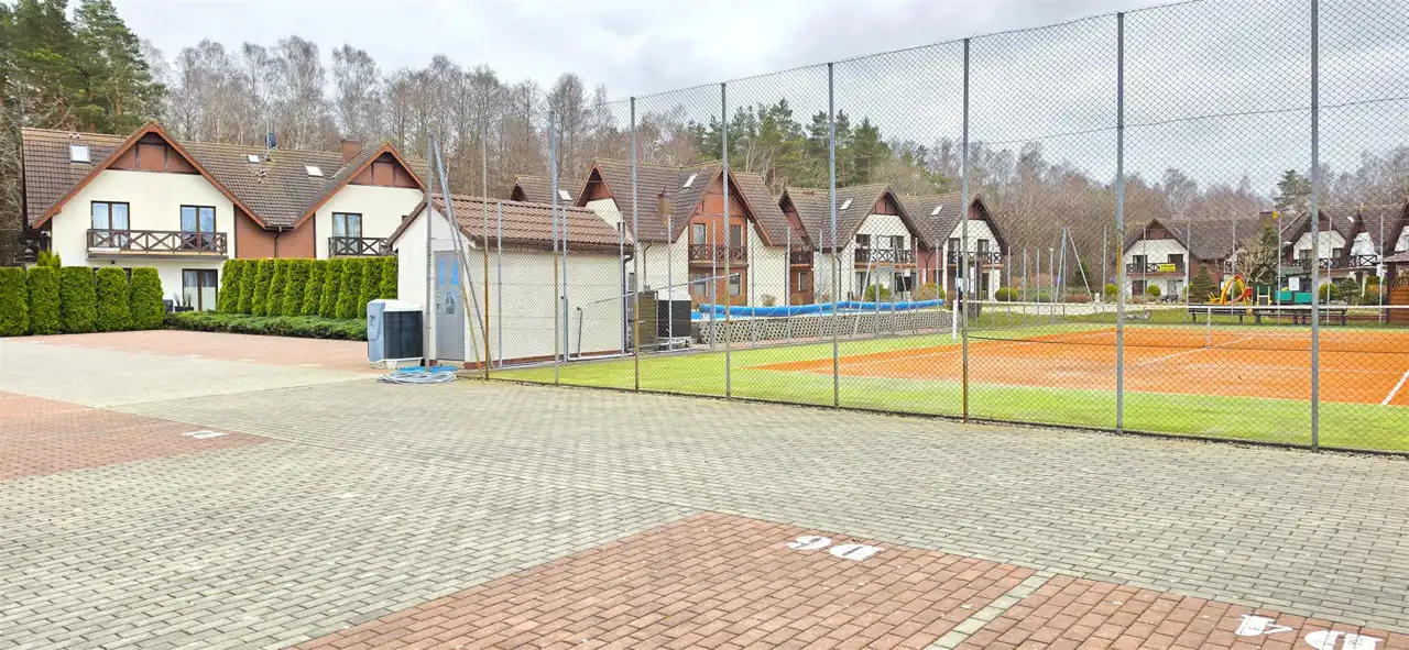 Atrakcyjny apartament położony na zamkniętym, bezpiecznym prestiżowym kompleksie apartamentowców "Łebska Ostoja" zaledwie 5km od centrum nadmorskiej miejscowości Łeba. Mieszkanie o powierzchni 45,5m2, usytuowane jest na parterze w pierwszym budynku od bramy wjazdowej. Mieszkanie składa się z funkcjonalnego przedpokoju, salonu z kominkiem, aneksem kuchennym i wyjściem na ładny taras, sypialni oraz łazienki z WC i prysznicem. Przestrzeń ta jest doskonale zaaranżowana, a bezpośrednie wyjście na taras pozwala cieszyć się chwilami relaksu na świeżym powietrzu. Osiedle oferuje liczne udogodnienia, takie jak plac zabaw dla dzieci, basen i kort tenisowy. Lokal mieszkalny stanowi odrębną nieruchomość. Usytuowana jest około 800m od Jeziora Łebsko (wspaniałe miejsce dla windsurfingu) w sąsiedztwie Słowińskiego Parku Krajobrazowego ( 50m do lasu ), a około 500m od drogi wojewódzkiej 214 Lębork-Łeba. Idealne miejsce dla tych, którzy chcą odpoczywać na łonie czystej przyrody, a w celach relaksowych planują „wypady” do Łeby. Idealna oferta dla osób zmęczonych codzienną gonitwą, ceniących sobie ciszę i bliskość natury, lubiących spacerować, uprawiać Nordic Walking, zbierać runo leśne, jeździć na rowerze odpoczywając od zgiełku miejskiego. Reasumując oferta jest godna polecenia ze względu na położenie oraz komfort zarówno w aspekcie mieszkalnym jak i komercyjnym (gotowy działający biznes - pod wynajem).