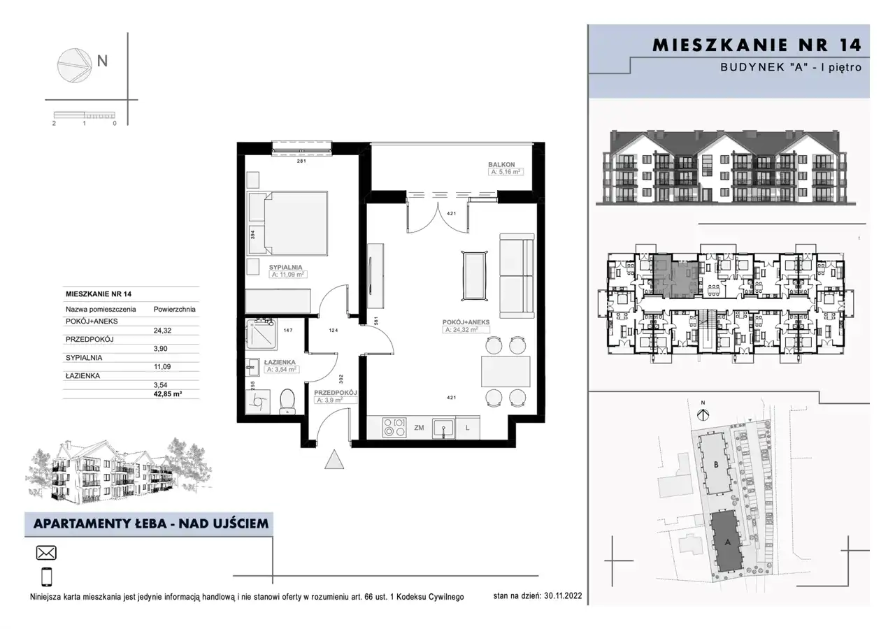- Charakterystyka mieszkania 42.85 m2, 2 pokoje