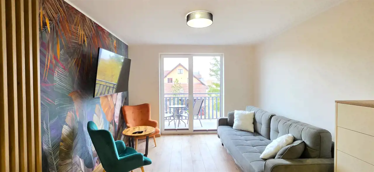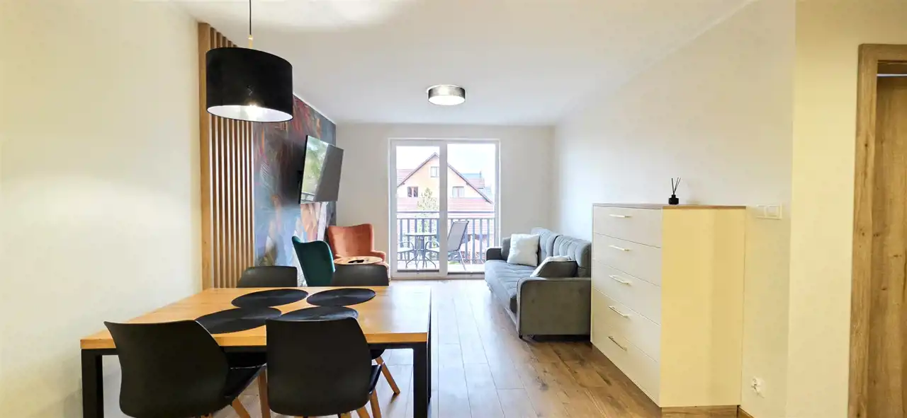 Atrakcyjne apartamenty o powierzchni 38m2 oraz 17m2, z balkonami i przynależnym miejscem parkingowym, położone w malowniczej, nadmorskiej miejscowości Łeba, w spokojnej okolicy przy al. Św. Jakuba (vis-à-vis "POLOmarket"). Lokale usytuowane są na drugim piętrze trzypiętrowego apartamentowca, wykonanego nowoczesną technologią (2021 rok). Wszystkie materiały posiadają niezbędne atesty i gwarancję (co daje bardzo dużą energooszczędność, ciepło). Wspólne wejście wyposażone jest w domofon, zapewniający mieszkańcom wygodę w użytkowaniu. Mieszkania nie wymagają żadnego wkładu finansowego, można od razu zamieszkać. W całej nieruchomości zainstalowano ogrzewanie podłogowe.