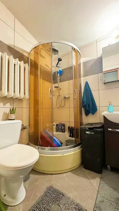 - Pierwsza część: wiatrołap, hol, łazienka z WC i prysznicem, aneks kuchenny, salon i dwie sypialnie.