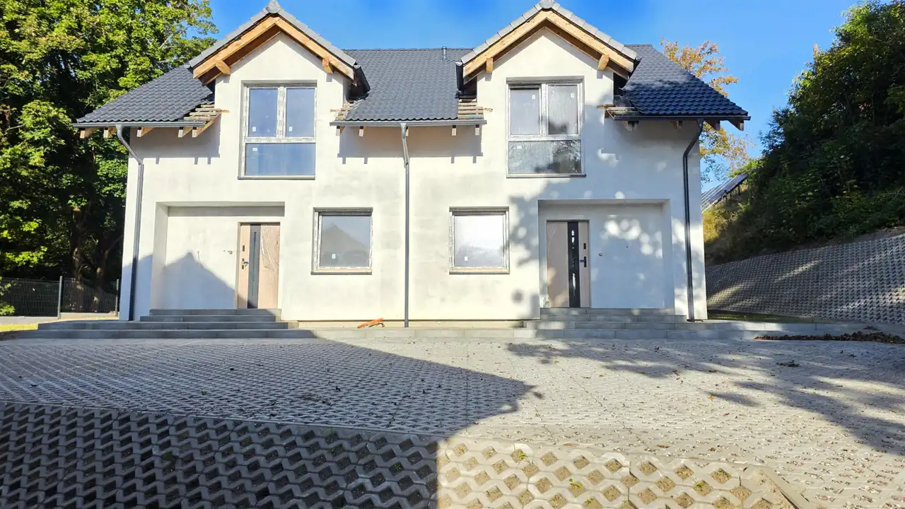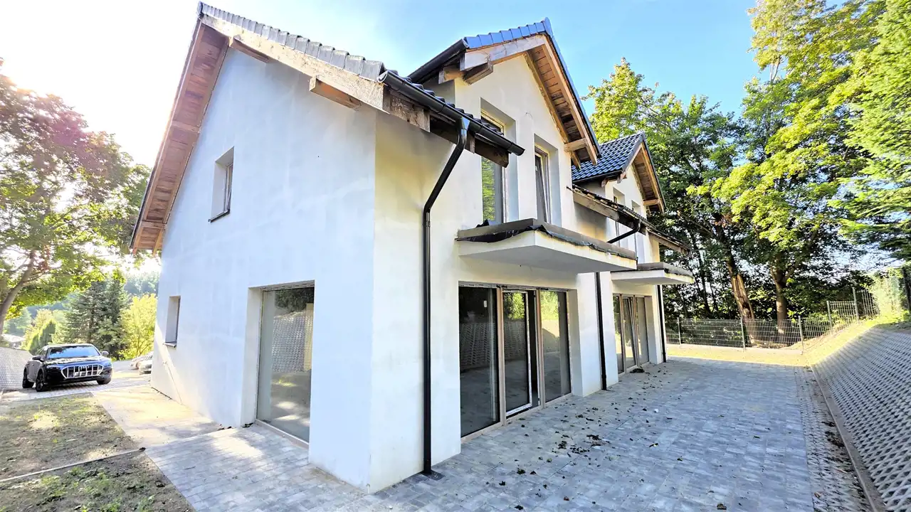 Nowoczesny apartament w zabudowie bliźniaczej z ogrodem (istnieje możliwość kupna z garażem - 599tys. ). Usytuowany zaledwie 2,5 km od ścisłego centrum Lęborka w cichym zakątku, z którego można szybko i wygodnie dostać się do centrum Lęborka - około 5 minut samochodem do Placu Pokoju – Urzędu Miejskiego. Nieruchomość wykonana jest z materiałów najwyższej jakości (pustak ceramiczny Porotherm - co przekłada się na liczne zalety, takie jak: wysoka wytrzymałość, izolacyjność akustyczna, trwałość czy odporność ogniowa), które posiadają niezbędne atesty i gwarancje oraz z zastosowaniem najwyższych standardów. Elewacja domu wykonana z tynków silikonowych, które są odporne na zabrudzenia i korozję mikrobiologiczną (powstawanie glonów i grzybów), tworzących oddychającą powłokę, która przepuszcza parę wodną i dwutlenek węgla. Budynek zaprojektowany został w nietuzinkowy sposób dbając o jego maksymalną funkcjonalność, komfort i wygodę przyszłych mieszkańców, czyniąc go jednocześnie eleganckim z zewnątrz jak i wewnątrz.