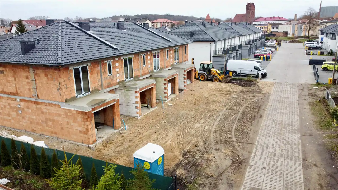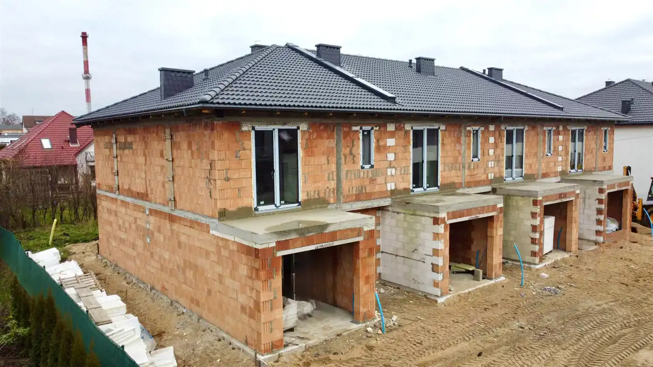 - nowoczesny budynek w zabudowie szeregowej, wybudowane w technologii murowanej