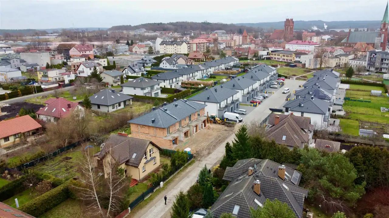 Oferujemy na sprzedaż dom w zabudowie szeregowej, stanowiący doskonałą propozycję miejsca do zamieszkania. Nieruchomość położona na dobrze skomunikowanym, spokojnym osiedlu oddalonym około 500m od centrum Lęborka. W najbliższej okolicy znajdują się szkoła, przedszkole, market, kościół, nowo powstały skwer z placem zabaw i siłownią zewnętrzną.