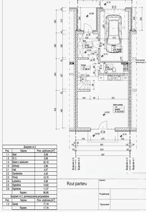 - garaż o powierzchni 17,16 m2 w bryle budynku