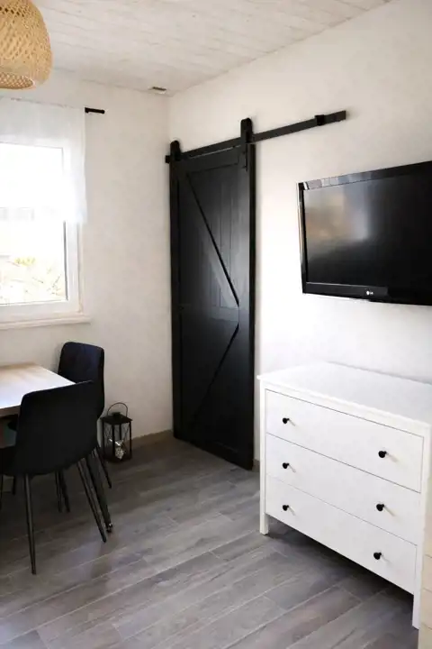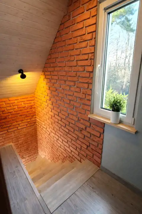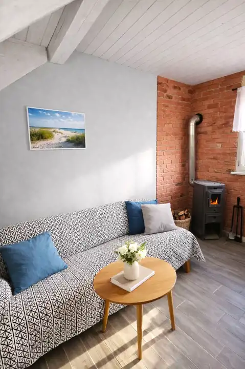 - pokój dzienny z kominkiem typu "koza" i wyposażonym aneksem kuchennym (płyta gazowa, lodówka)