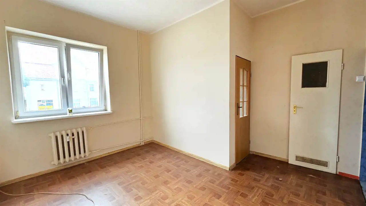 Przestronne mieszkanie położone w Lęborku przy ul. Krzywoustego (opodal ZUS-u) o powierzchni użytkowej 24,86m2. Lokal usytuowany jest na pierwszym piętrze trzypiętrowego bloku, po remoncie elewacji i dociepleniu co sprawia, że jest bardzo ciepły, energooszczędny. Nieruchomość wymaga nakładów finansowych, jest do generalnego remontu. Składa się z przedpokoju, widnego pokoju dziennego połączonego z otwartą kuchnią, sypialni oraz łazienki z WC. Do mieszkania przynależy również piwnica (5,46m2). W pobliżu nieruchomości znajduje się rozległa infrastruktura - budynki użyteczności publicznej, szkoły, kościoły, instytucje usługowo-handlowe, markety wielkopowierzchniowe (miejskie centrum handlowe), przy których znajdują się restauracje - McDonald's i KFC. Ze względu na wspomniane atuty, położenie oraz lokalizację, opodal drogi krajowej S6 - łączącej Trójmiasto - Szczecin (w chwili obecnej dojazd do Gdyni to tylko około 38 min, a po oddaniu odcinka Leśnice - Bożepole Wielkie dojazd do Gdyni skróci się do ok 30 minut), oferta jest godna polecenia.