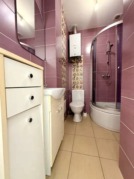 Mieszkanie składa się z jednego, przestronnego pomieszczenia z wydzielonym aneksem kuchennym, łazienki z WC oraz przedpokoju.