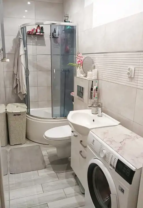 - Media Ogrzewanie: piec dwufunkcyjny; Woda: ciepła - piecyk gazowy; Gaz: jest