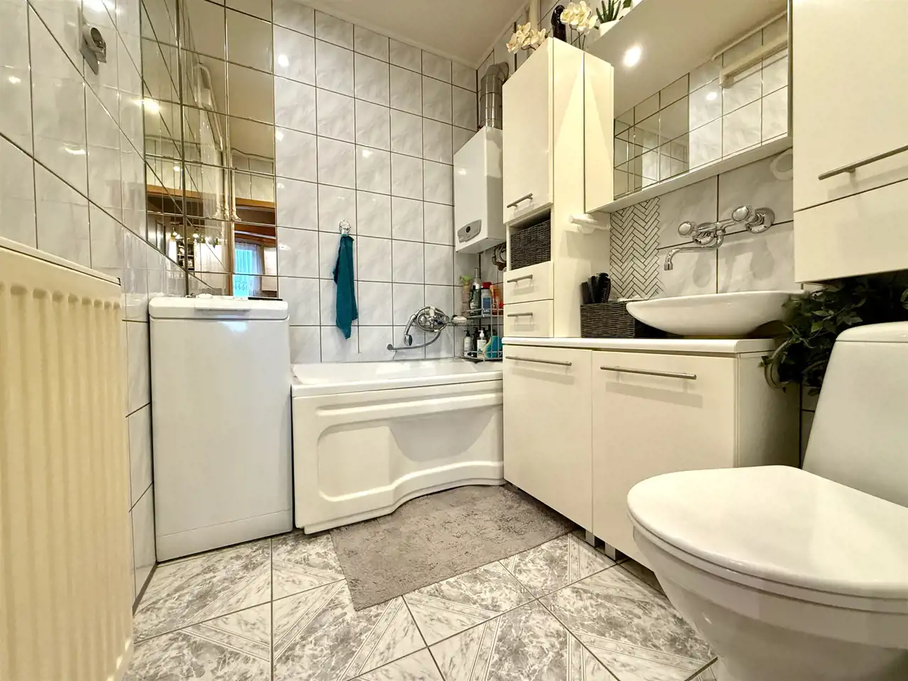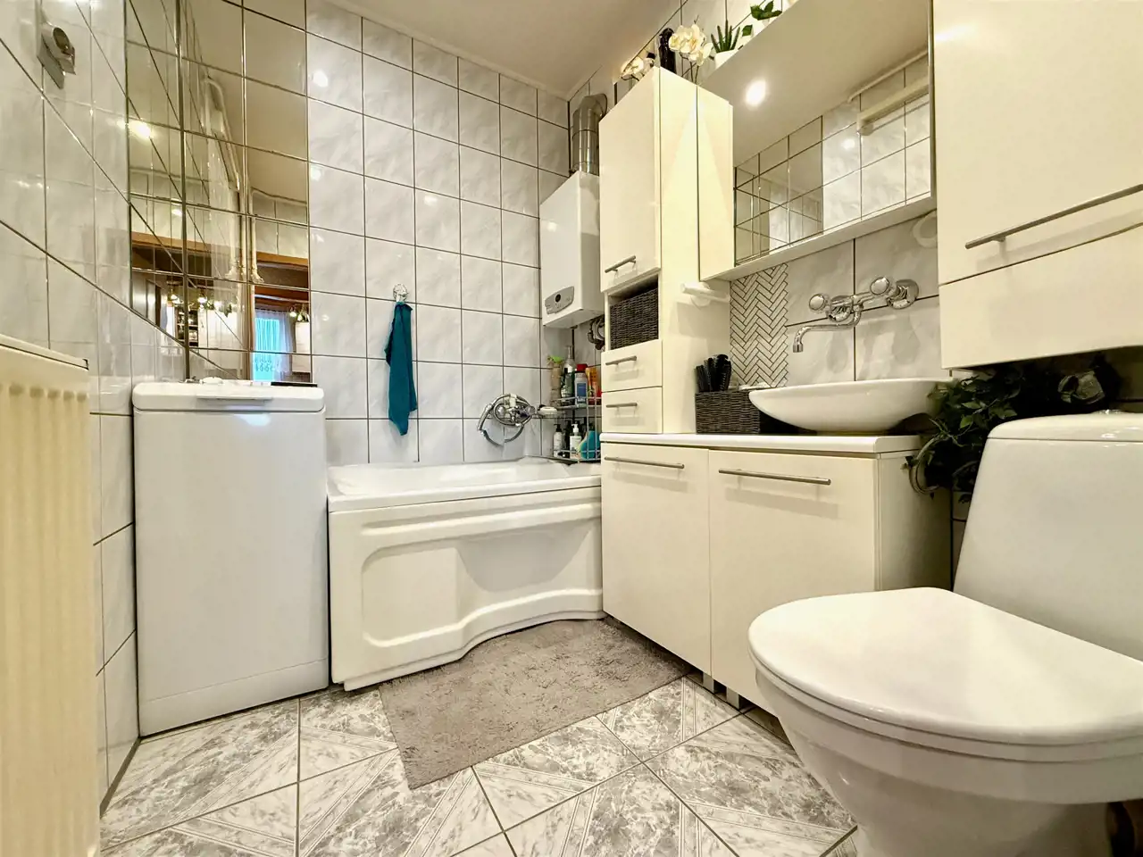 Łazienki z WC – wyposażonej w wannę, umywalkę i WC oraz piec gazowy CWU.