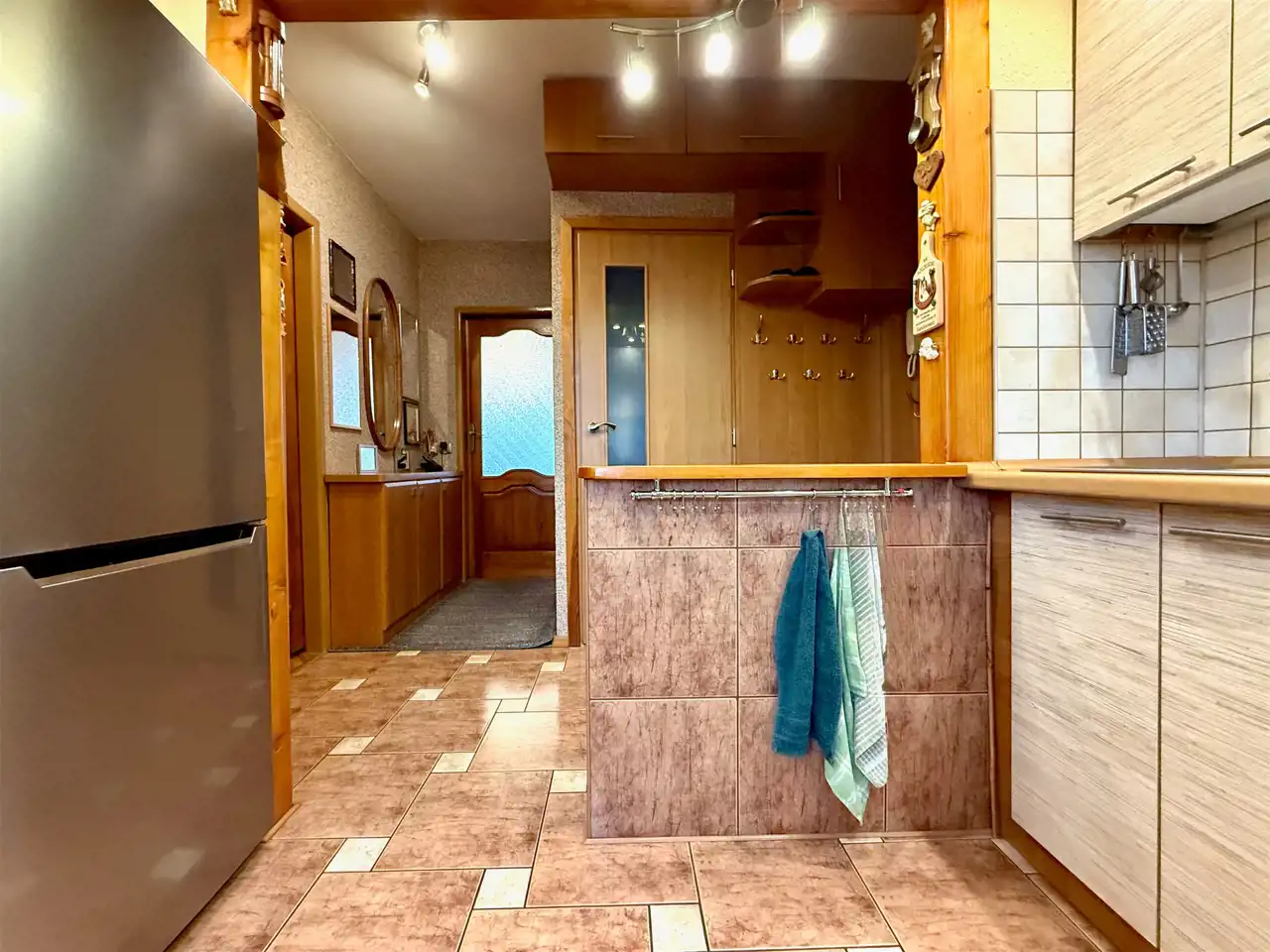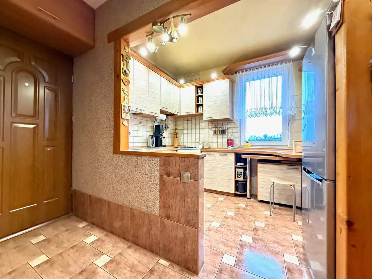 Podłogi: Parkiet w salonie i pokoju, terakota w przedpokoju, kuchni i łazience.