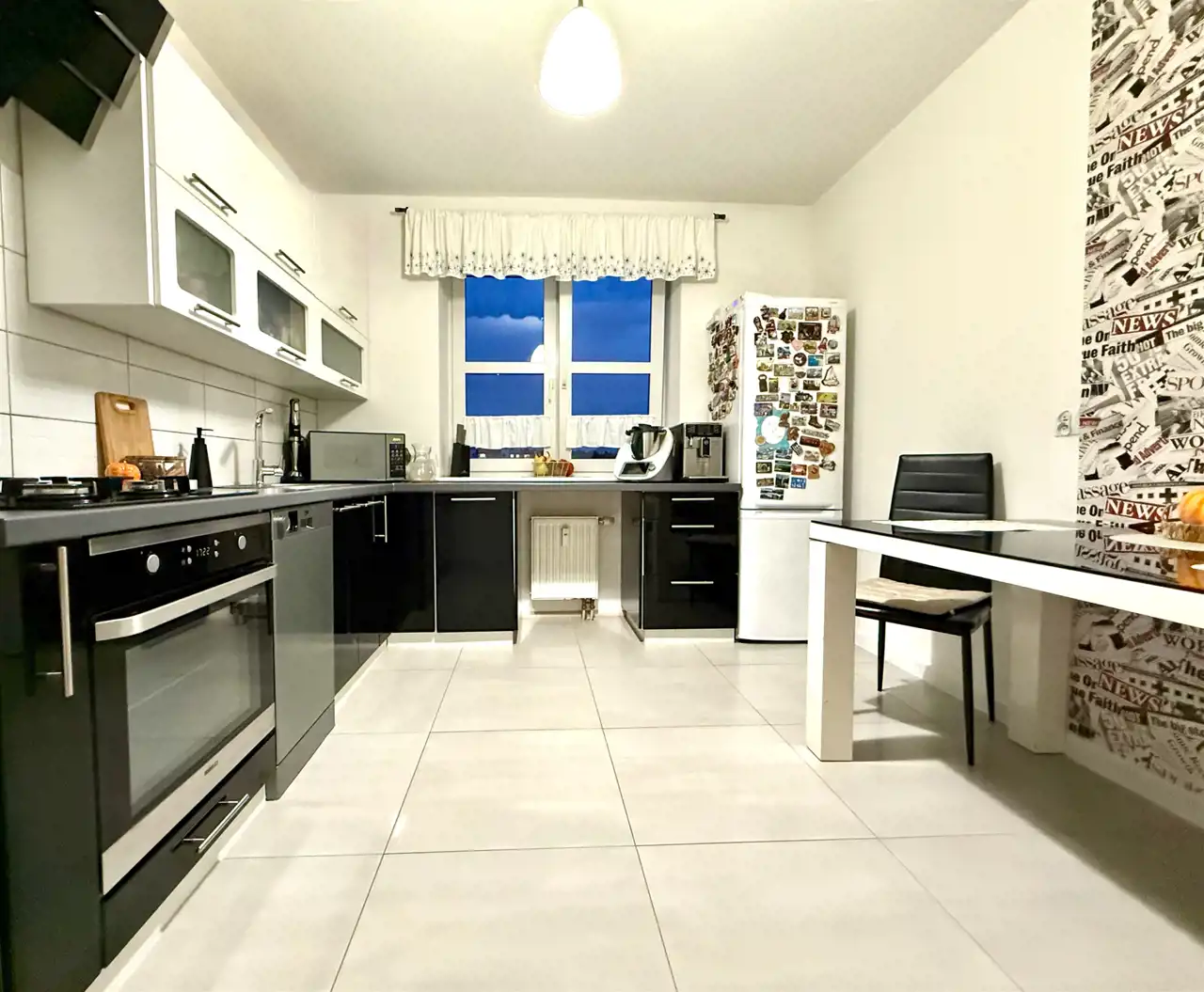 WYPOSAŻENIE W CENIE: W cenie pozostają meble kuchenne, płyta gazowa, zmywarka, okap, piekarnik, lodówka, szafa w przedpokoju.