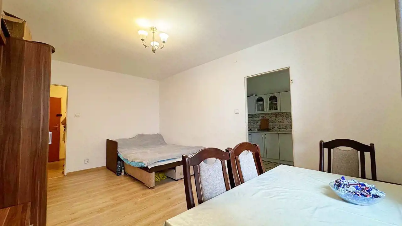 Kwatera nie wymaga natychmiastowych nakładów finansowych, można zamieszkać i z czasem aranżować według gustu. Ze względu na metraż i układ ma bardzo duży potencjał. Nieruchomość dotychczas służyła jako inwestycja pod wynajem długoterminowy.
