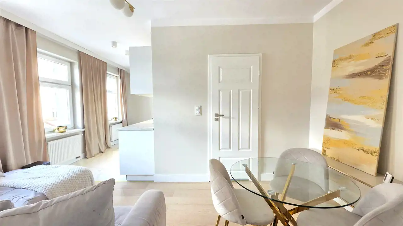Atrakcyjne mieszkanie o powierzchni 38,37m2, położone w centrum Lęborka przy rewitalizowanej ul. Stryjewskiego (opodal kościoła NMP Królowej Polski). Lokal usytuowany jest na pierwszym piętrze dwupiętrowej kamienicy po remoncie elewacji i dachu, co sprawia, że jest bardzo ciepły, energooszczędny. Lokal nie wymaga żadnych nakładów finansowych, jest po generalnym remoncie. Składa się z przedpokoju, pokoju dziennego, otwartej kuchni, sypialni oraz łazienki z WC i wanną. Atutem nieruchomości jest przynależna piwnica oraz dostęp do wspólnego strychu. Mieszkanie zostaje praktycznie z całym wyposażeniem (w opcji) - wystarczy wziąć walizkę i zamieszkać - co pozwala zaoszczędzić dodatkowe nakłady finansowe.