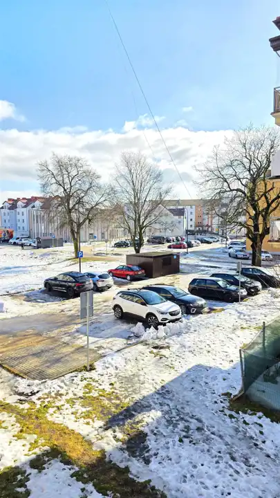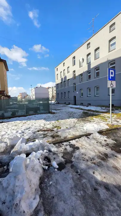 Przed budynkiem znajdują się miejsca parkingowe, a w pobliżu znajduje się cała infrastruktura – budynki użyteczności publicznej i instytucje usługowo-handlowe, sklepy, szkoły, deptak, przedszkola i kościoły. Całość prezentuje się dobrze.
