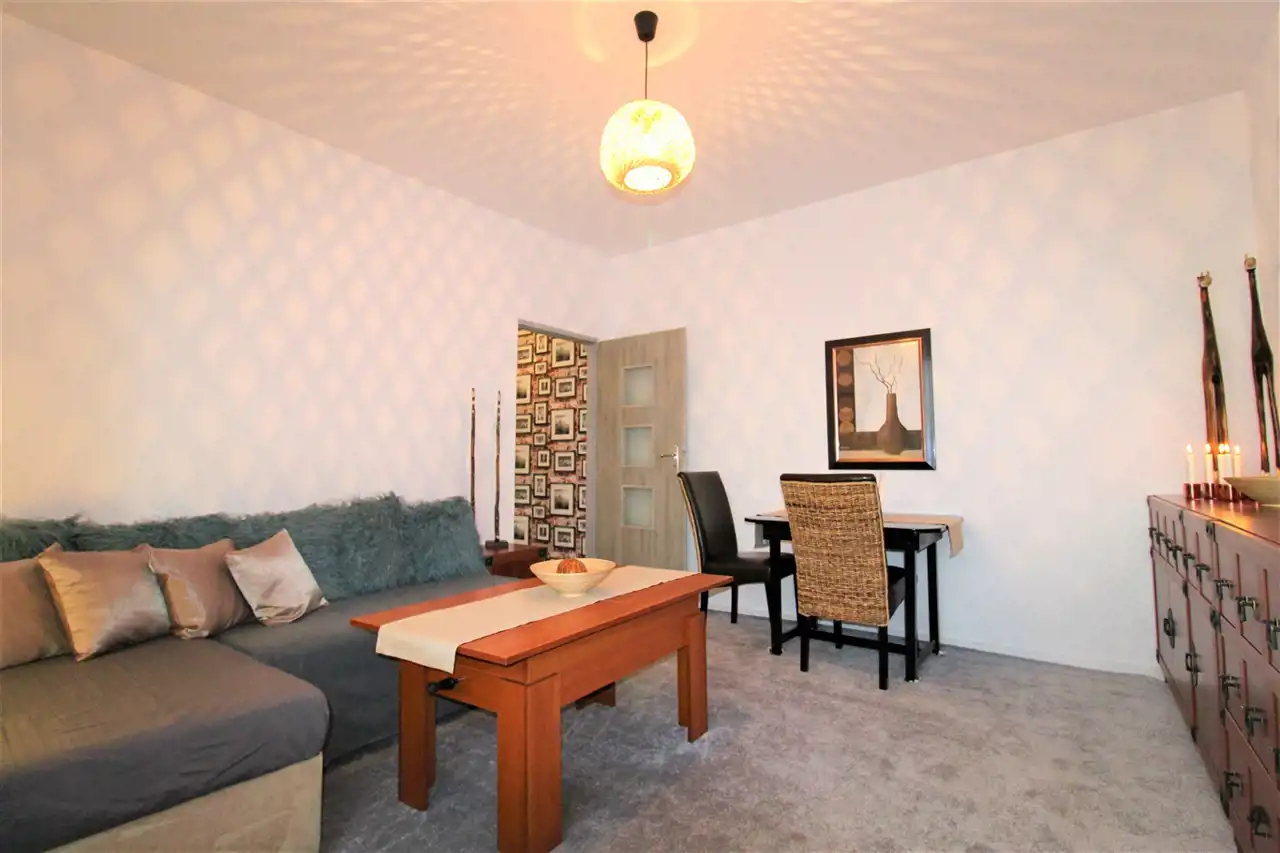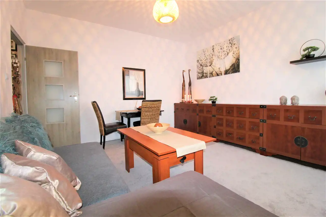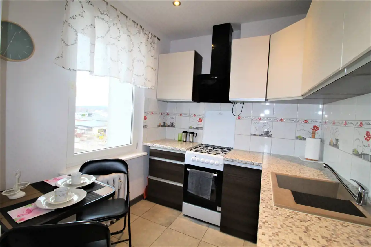 Bardzo ładne mieszkanie dla osób ceniących ciszę i spokój z dala od zgiełku miejskiego położone w Lęborku przy ul. Pionierów, opodal Straży Pożarnej o powierzchni całkowitej 47,14m2. Lokal usytuowany jest na drugim piętrze dwupiętrowego bloku, po remoncie elewacji i dociepleniu co sprawia, że jest bardzo ciepły, energooszczędny. Nieruchomość jest po remoncie (w pełni umeblowana), dzięki czemu nie trzeba się martwić, ani tracić czasu na odrestaurowanie mieszkania, co pozwala na zaoszczędzenie dodatkowych nakładów finansowych. Składa się z korytarza, pokoju dziennego, sypialni, widnej, zabudowanej kuchni oraz łazienki z wc i prysznicem. Ponadto do mieszkania przynależy piwnica. W pobliżu posesji znajduje się rozległa infrastruktura – budynki użyteczności publicznej, instytucje usługowo-handlowe. Reasumując, ze względu na w/w atuty oraz położenie (istotne dla osób coraz częściej pracujących w Trójmieście), w niedalekiej odległości od ekspresowej drogi krajowej S6, łączącej Trójmiasto - Szczecin (w chwili obecnej dojazd do Gdyni to tylko około 40 min, a po oddaniu odcinka Leśnice – Bożepole Wielkie dojazd do Gdyni skróci się do ok 30 minut), oferta jest godna polecenia.