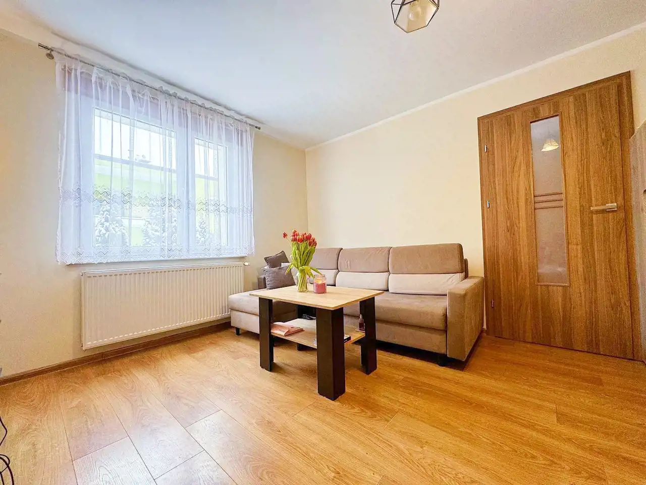 -widny, przestronny salon, idealny na popołudniowy relaks po pracy