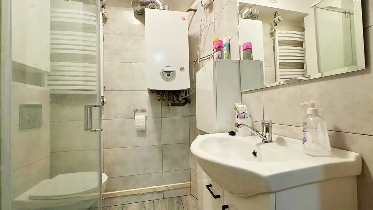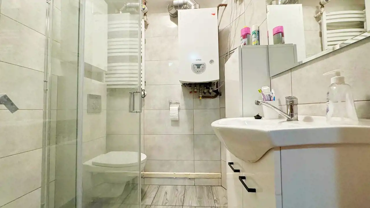 - Media Ogrzewanie: gazowe; Woda: ciepła - piecyk gazowy; Gaz: brak