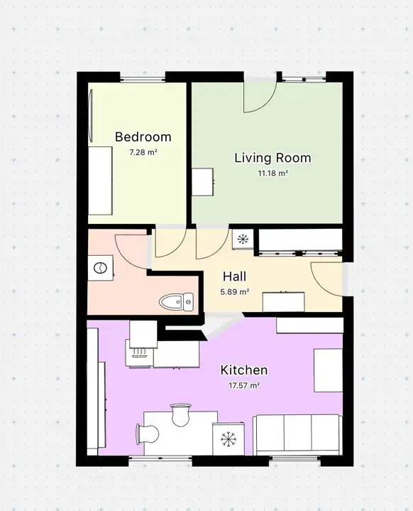 - Charakterystyka mieszkania 40.6 m2, 2 pokoje