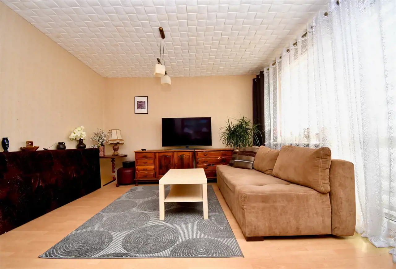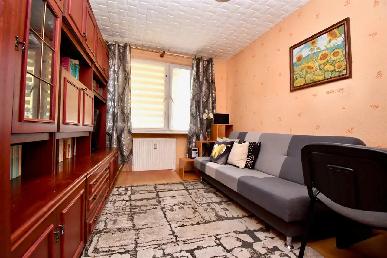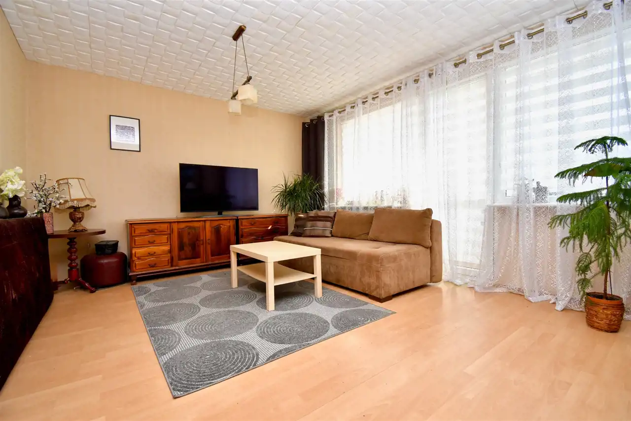 Mieszkanie składa się z pokoju dziennego z wyjściem na balkon typu loggia 5 m2, sypialni, kuchni, łazienki z WC oraz przedpokoju. Do mieszkania przynależy również piwnica ok. 6 m2. Na podłogach w pokojach położno panele podłogowe, w przedpokoju, kuchni i łazience terakotę. Ogrzewanie i ciepła woda z miejskiej sieci ciepłowniczej. Opłaty za ogrzewanie w sezonie grzewczym doliczane do czynszu i rozliczane wg podzielników. Mieszkanie dostępne od zaraz.