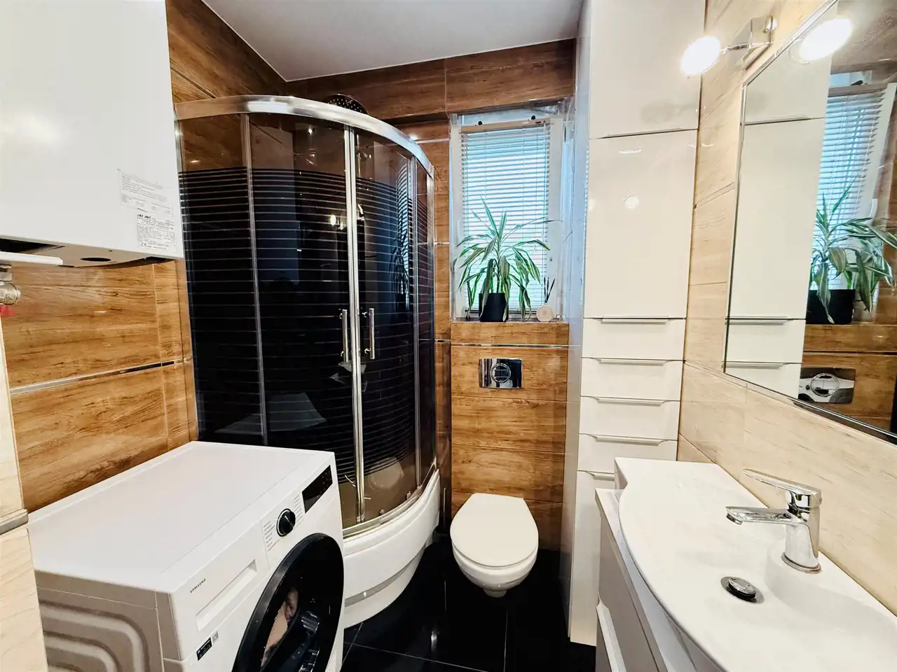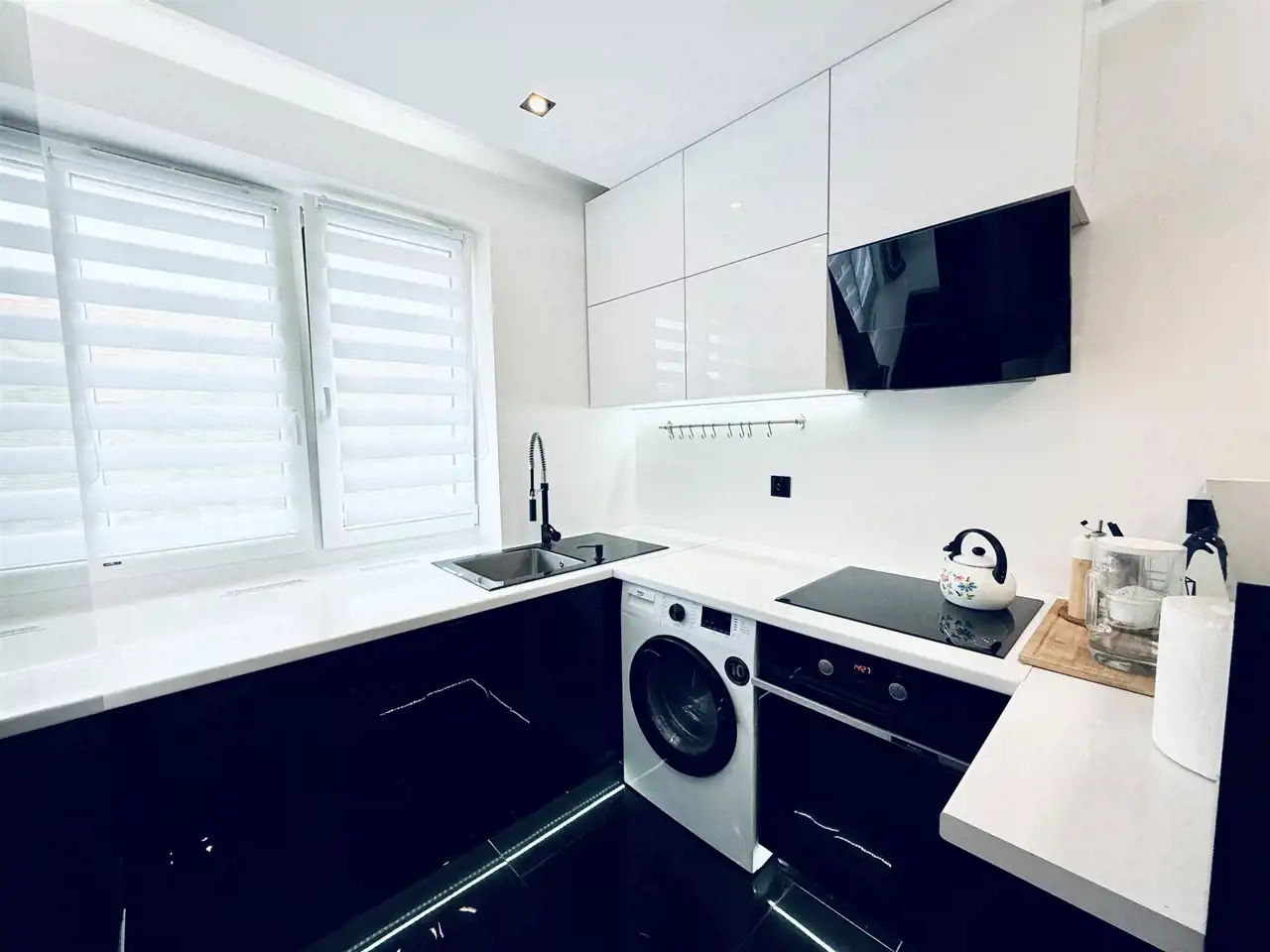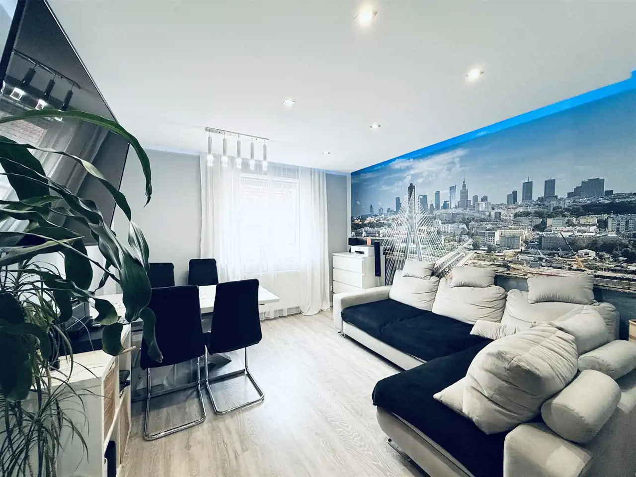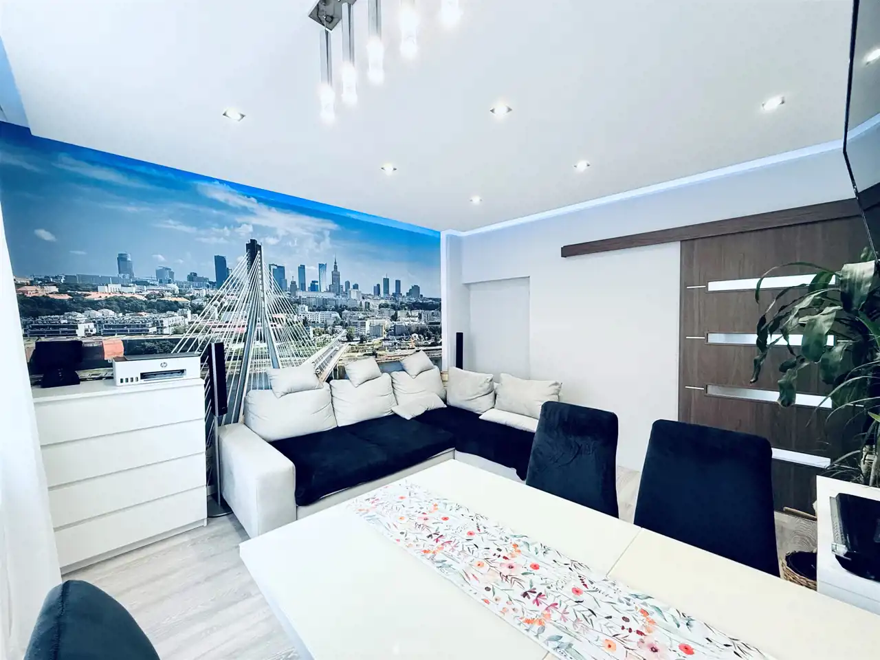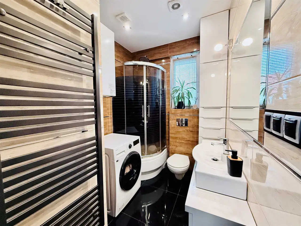Nieruchomość została kompleksowo wyremontowana – w trakcie prac wymieniono wszystkie instalacje: elektryczną, hydrauliczną i wentylacyjną. Obniżono i docieplono sufity, które zostały dodatkowo podświetlone taśmami LED – to rozwiązanie poprawia estetykę wnętrza i buduje przyjemny klimat. Właściciel zadbał również o wygłuszenie ścian zewnętrznych, co podnosi komfort akustyczny mieszkania.