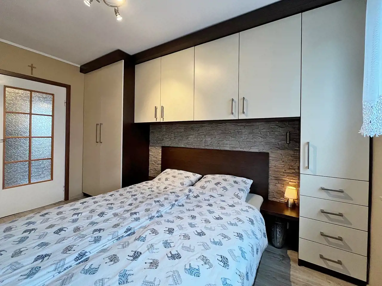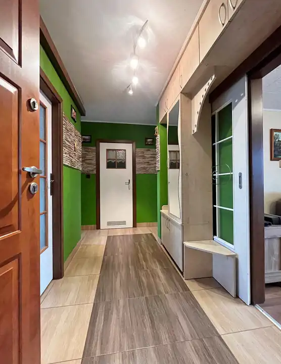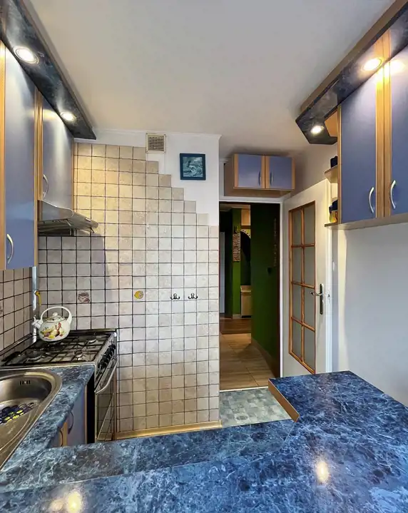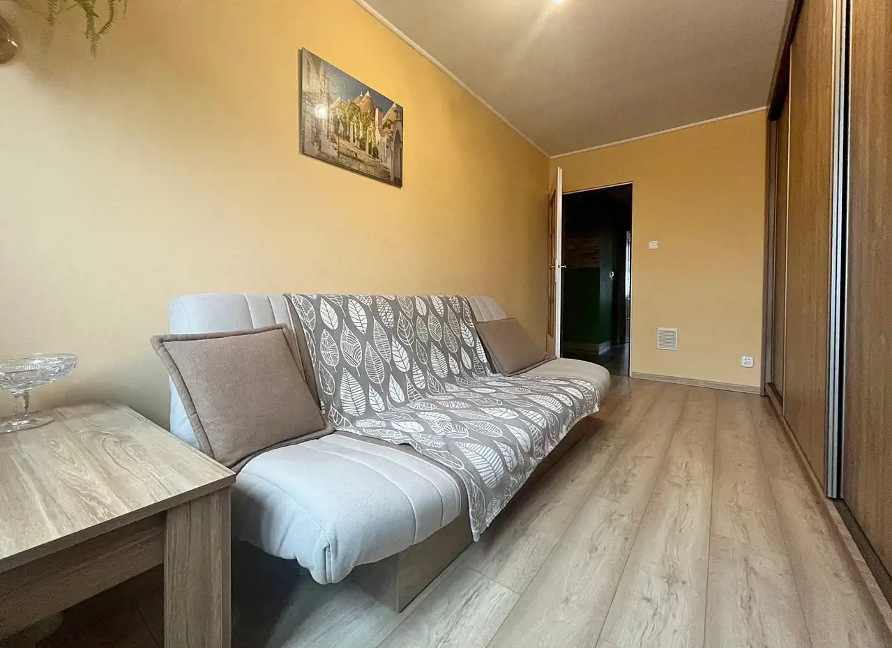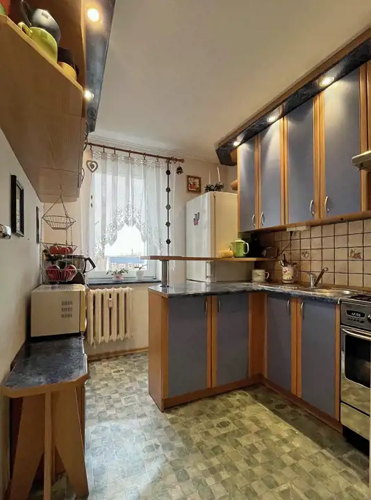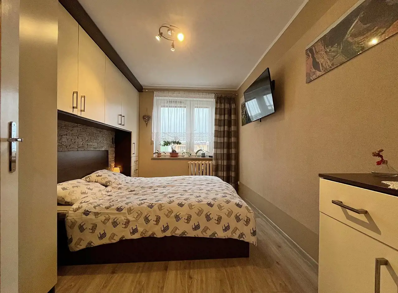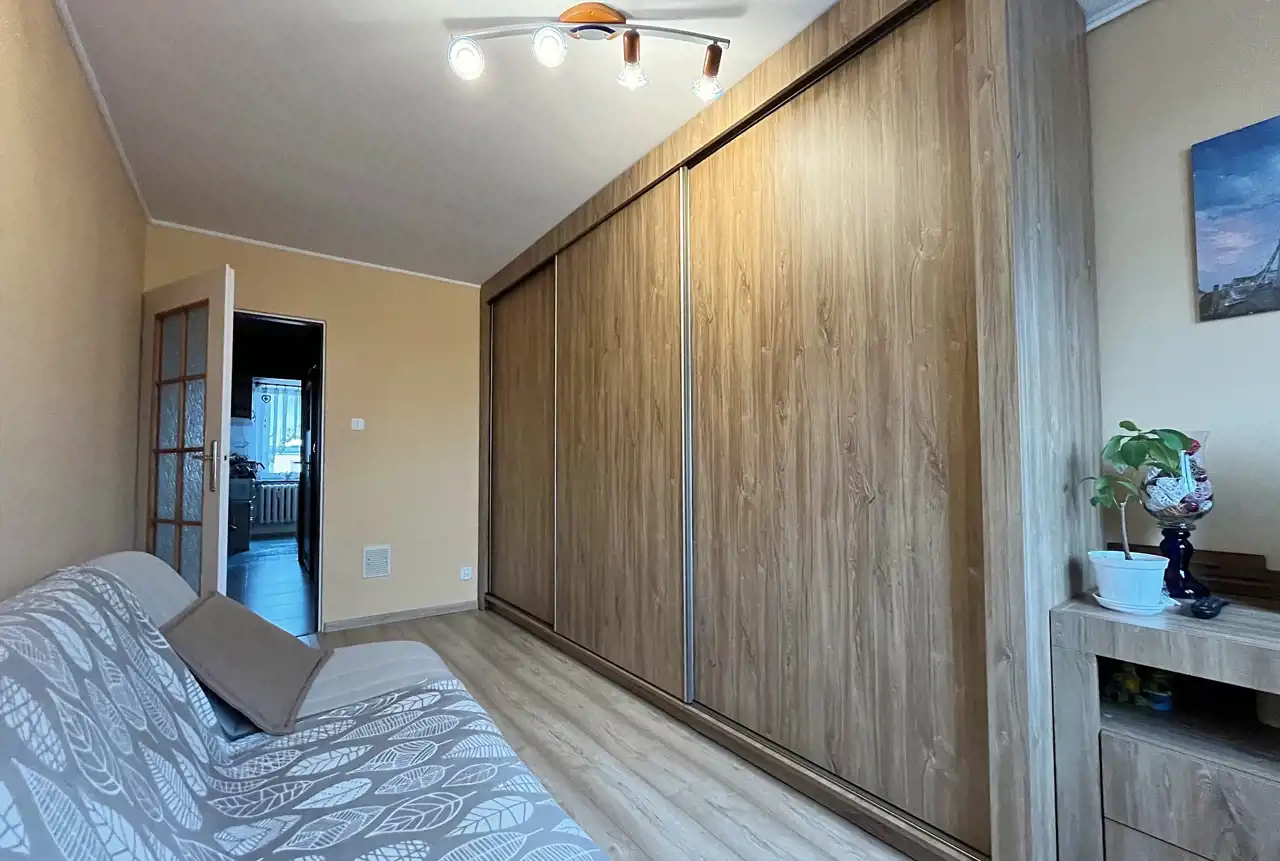 Mieszkanie niewymagających pilnych prac remontowych: zadbane, a w cenie spora cześć wyposażenia, jak: kuchnia, zabudowa w sypialni czy pojemna szafa z pokoju.