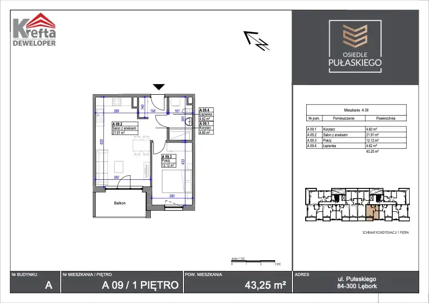 Osiedle Pułaskiego w Lęborku – Nowoczesne Mieszkania 2- i 3-Pokojowe od 43 do 63 m²