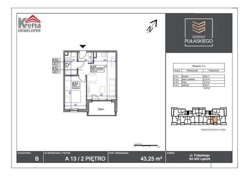 Osiedle Pułaskiego w Lęborku – Nowoczesne Mieszkania 2- i 3-Pokojowe od 43 do 63 m²