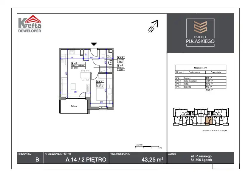 Osiedle Pułaskiego w Lęborku – Nowoczesne Mieszkania 2- i 3-Pokojowe od 43 do 63 m²