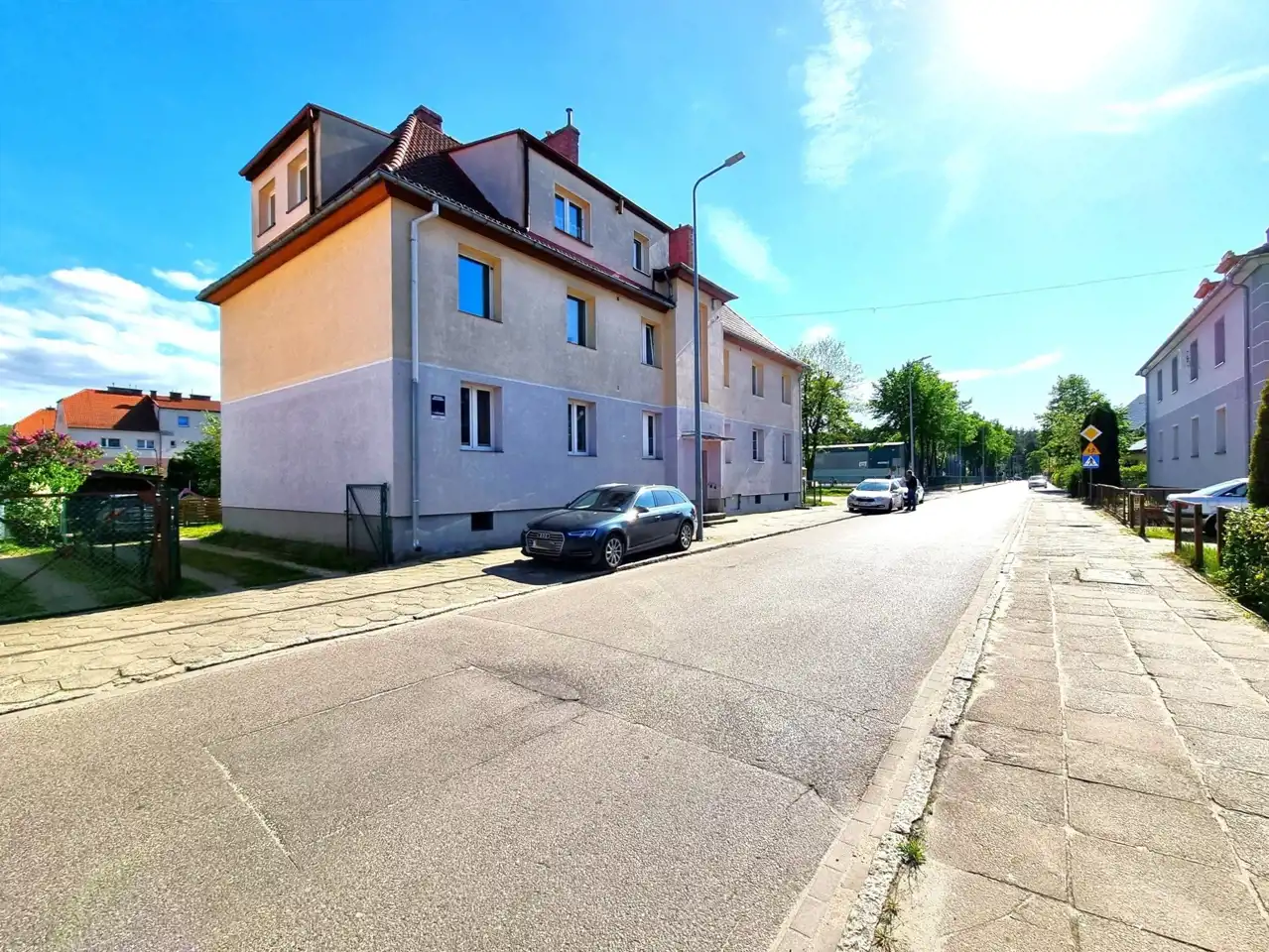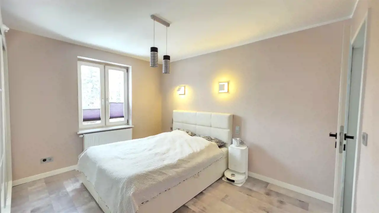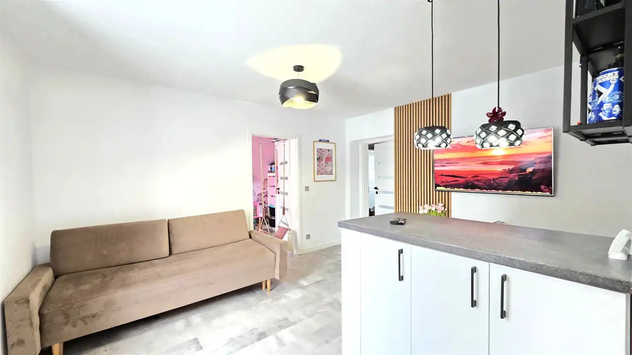 TERMIN WYDANIA: LIPIEC/SIERPIEŃ 2026R.Atrakcyjne, komfortowe mieszkanie o powierzchni użytkowej 48,90m2, z wiatą garażową i ogródkiem, położone w Lęborku przy ul. Kościuszki (opodal Szkoły Podstawowej nr 5). Lokal usytuowany jest na wysokim parterze dwupiętrowej kamienicy, po remoncie dachu, elewacji i dociepleniu co sprawia, że jest bardzo ciepły (energooszczędny). Składa się z przedpokoju, pokoju dziennego połączonego z widną, otwartą kuchnią, dwóch sypialni oraz łazienki z WC i prysznicem. Lokal nie wymaga nakładów finansowych, można od razu zamieszkać. Do nieruchomości przynależy piwnica oraz w/w ogrodzone podwórko i wiata z miejscem na samochód.