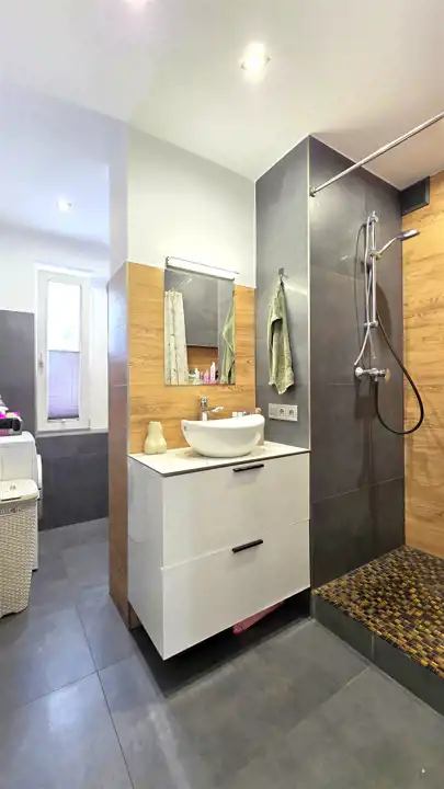 - Media Ogrzewanie: piec dwufunkcyjny; Woda: ciepła - piecyk gazowy; Gaz: tak - miejski