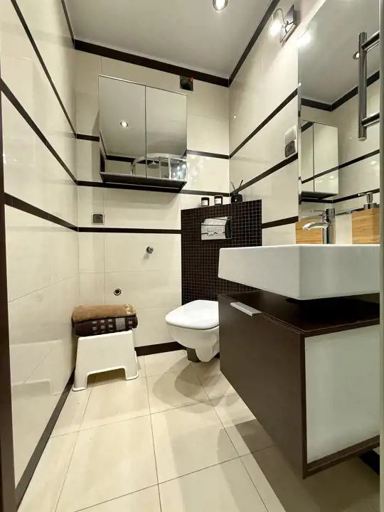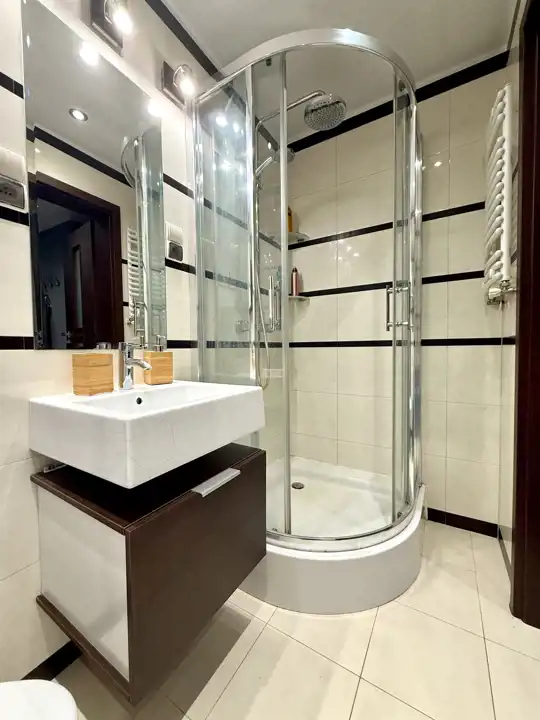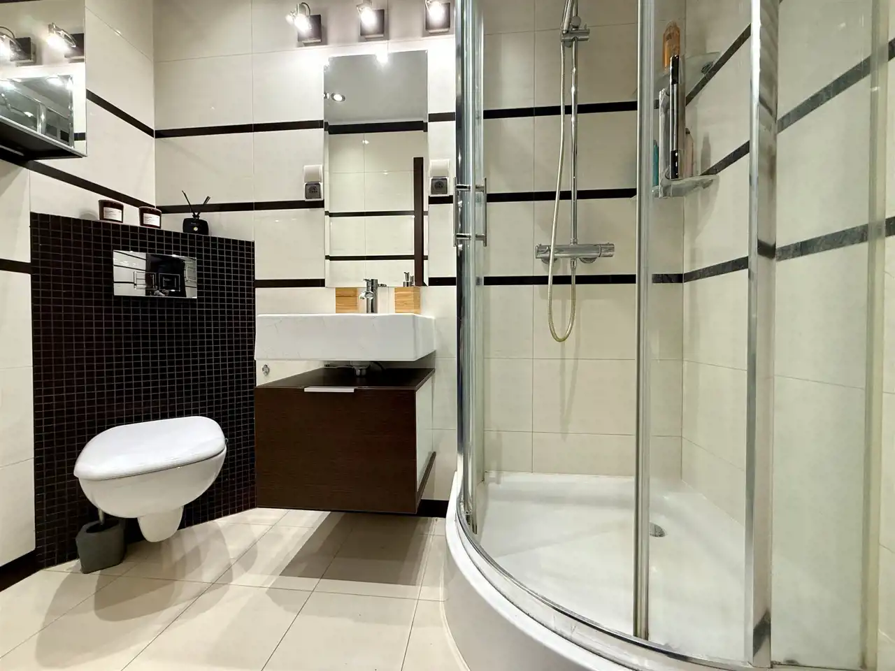Łazienka z WC – z estetycznym wykończeniem i prysznicem.