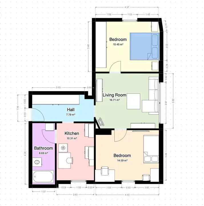 - Charakterystyka mieszkania 71.9 m2, 3 pokoje