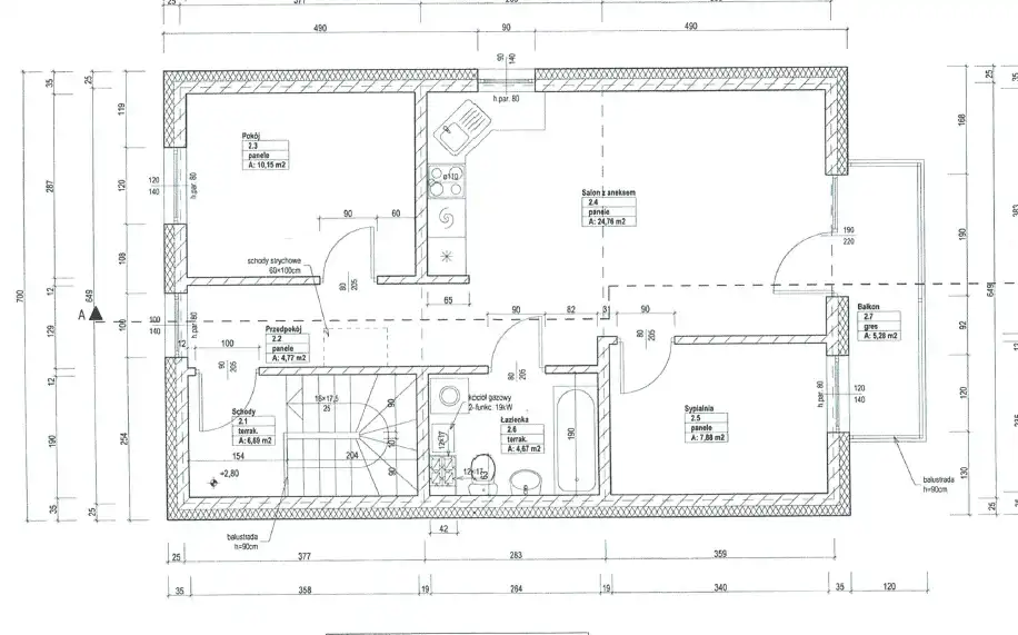 - Rozkład mieszkania 1p piętro