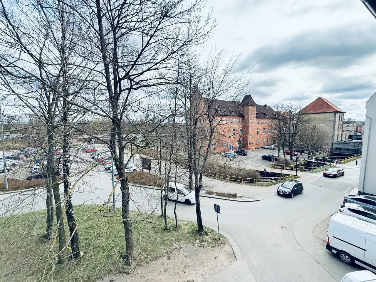 Mieszkanie na sprzedaż Lębork – 82,9 m², ul. Przyzamcze, widok na Zamek Krzyżacki i rzekę Łebę