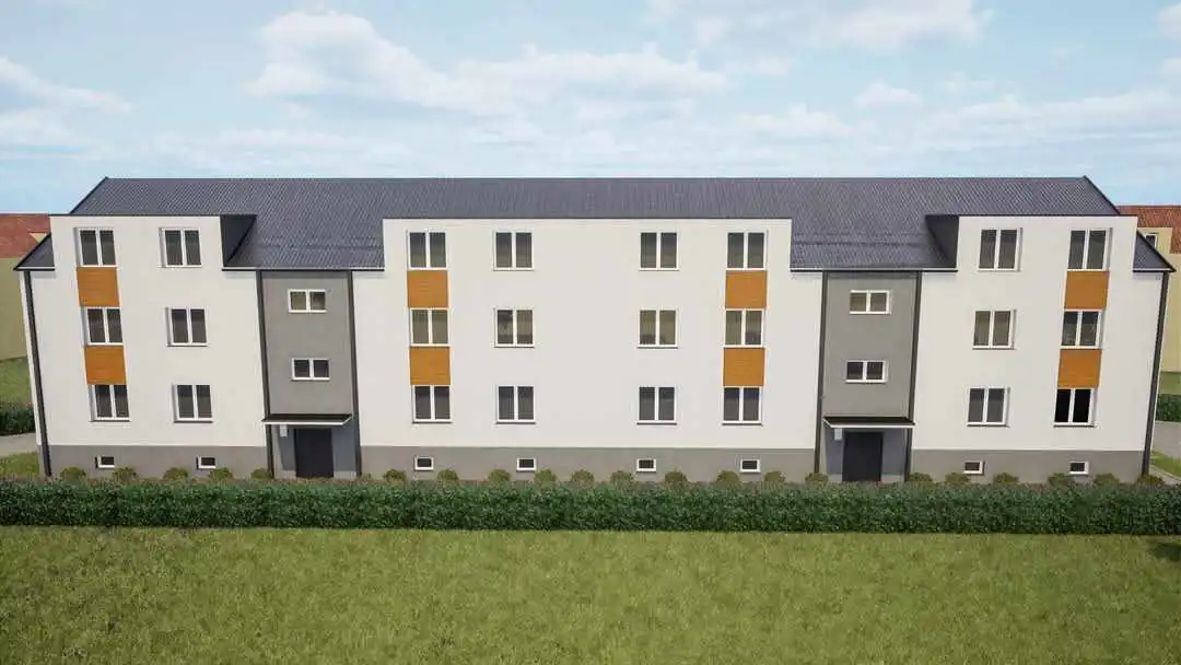 W ogłoszeniu przedstawiamy również propozycję wizualizacji budynku, rzuty z wymiarami oraz przykładowe projekty aranżacji apartamentów.