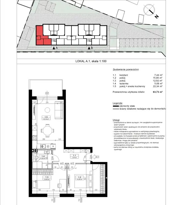 - Charakterystyka mieszkania 63.73 m2, 3 pokoje