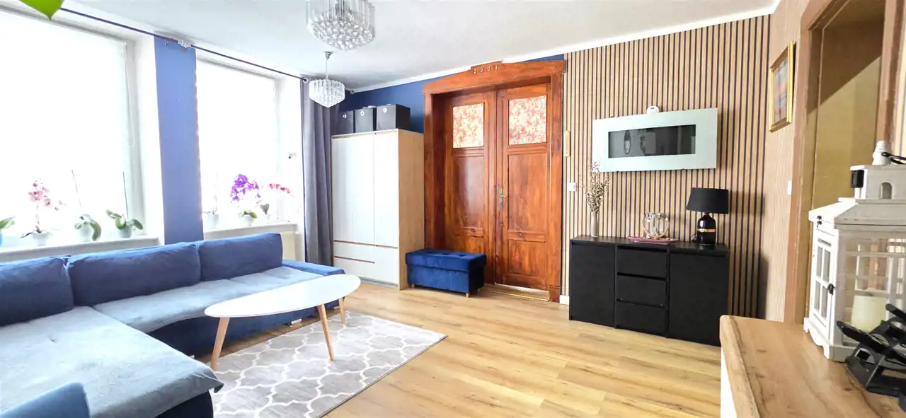 Komfortowe, przestronne mieszkanie położone w centrum Lęborka przy ulicy Wojska Polskiego (vis a vis Parku Michalskiego i restauracji "Różana") o powierzchni użytkowej 81,10m2. Lokal usytuowany jest na parterze trzypiętrowej kamienicy, po remoncie elewacji, dachu i dociepleniu co sprawia, że jest bardzo ciepły i słoneczny. Nieruchomość nie wymaga natychmiastowych nakładów finansowych, można zamieszkać i z czasem aranżować według gustu. Mieszkanie składa się z przedpokoju, widnego, przestronnego pokoju dziennego, dwóch sypialni, oddzielnej, widnej, zabudowanej kuchni oraz łazienki z wanną oraz WC. Do lokalu przynależy również duża piwnica oraz strych do wspólnego użytkowania. Czynsz miesięczny wynosi około 600 zł przy zamieszkaniu przez cztery osoby. Koło nieruchomości znajdują się miejsca parkingowe oraz cała infrastruktura– budynki użyteczności publicznej i instytucje usługowo-handlowe, szkoły, apteki, przychodnie, sklepy, markety wielkopowierzchniowe oraz wspomniany zrewitalizowany park w którym znajduje się siłownia napowietrzna oraz plac zabaw dla dzieci. Całość prezentuje się dobrze. Ze względu na standard, super położenie (3 minuty do dworca PKP i PKS) oraz cenę oferta jest godna polecenia.
