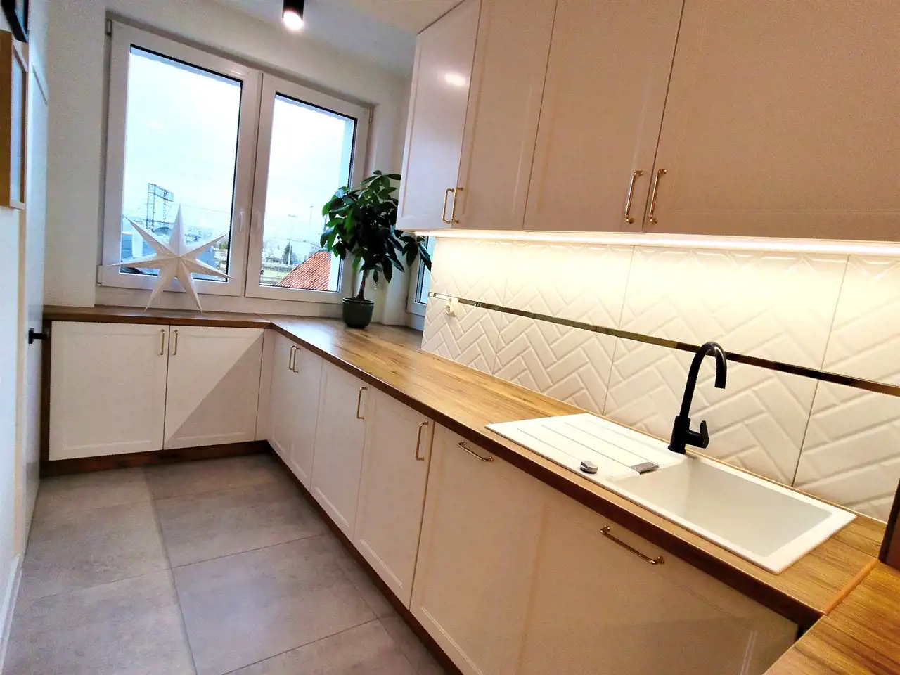 Wszystko urządzone ze smakiem, w nowoczesnym stylu. Wystarczy wziąć walizkę i można się wprowadzić.