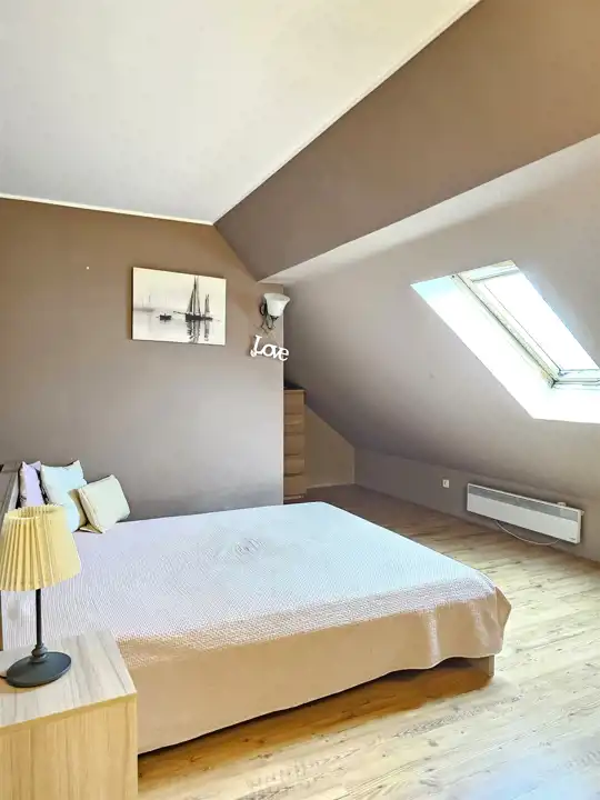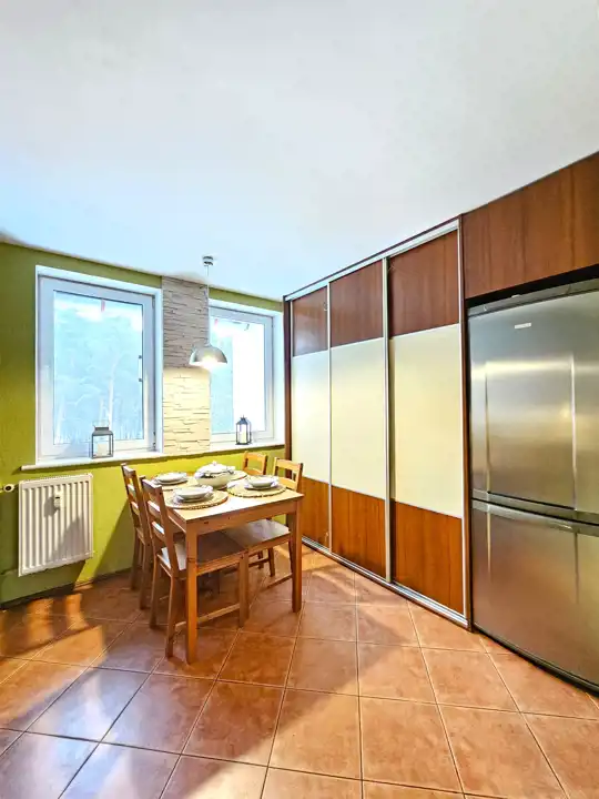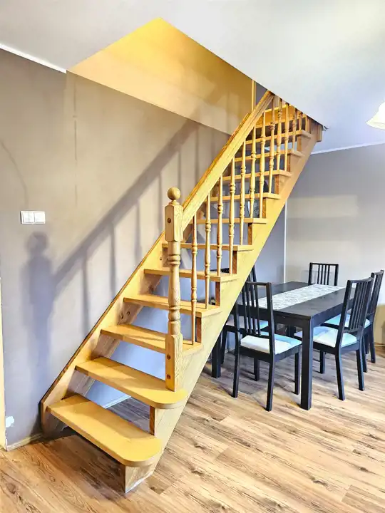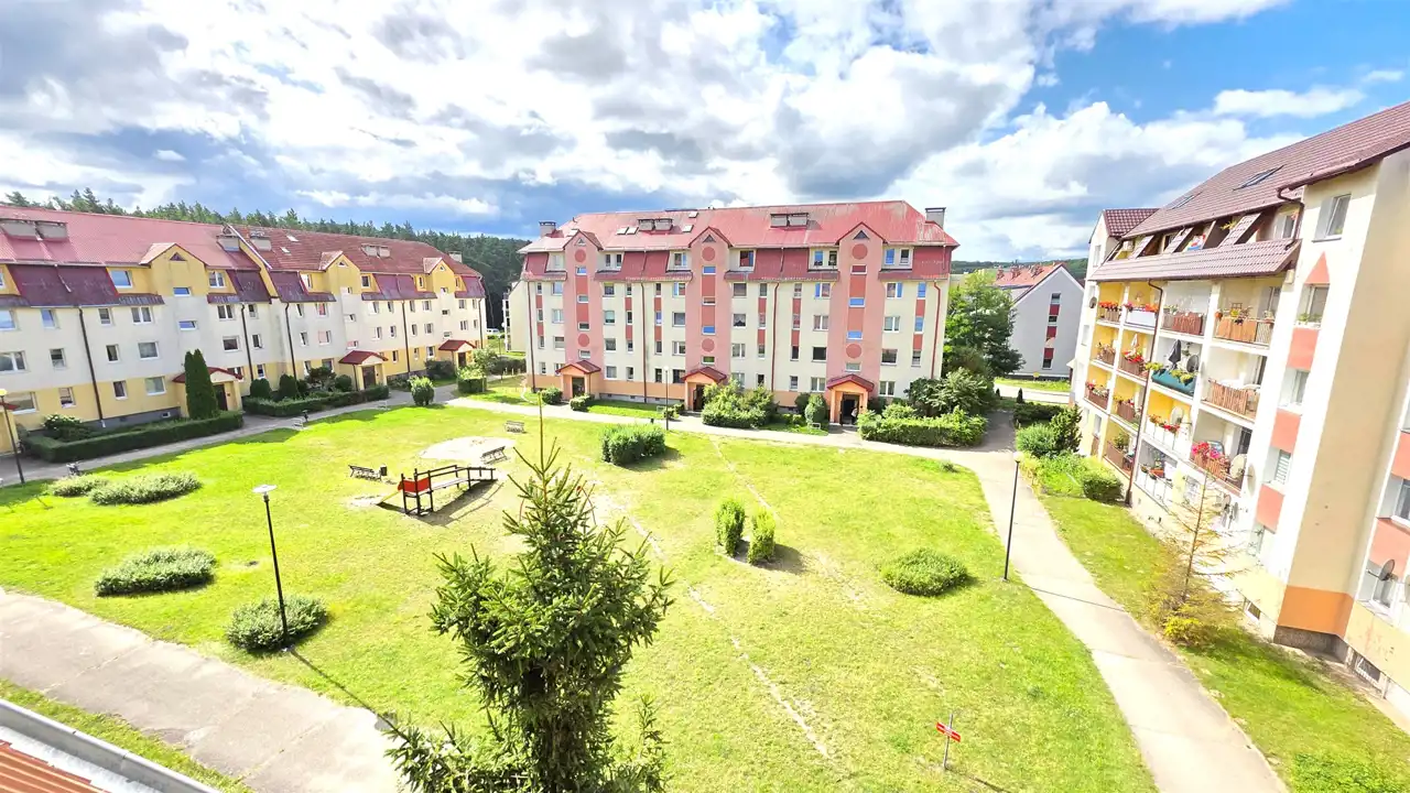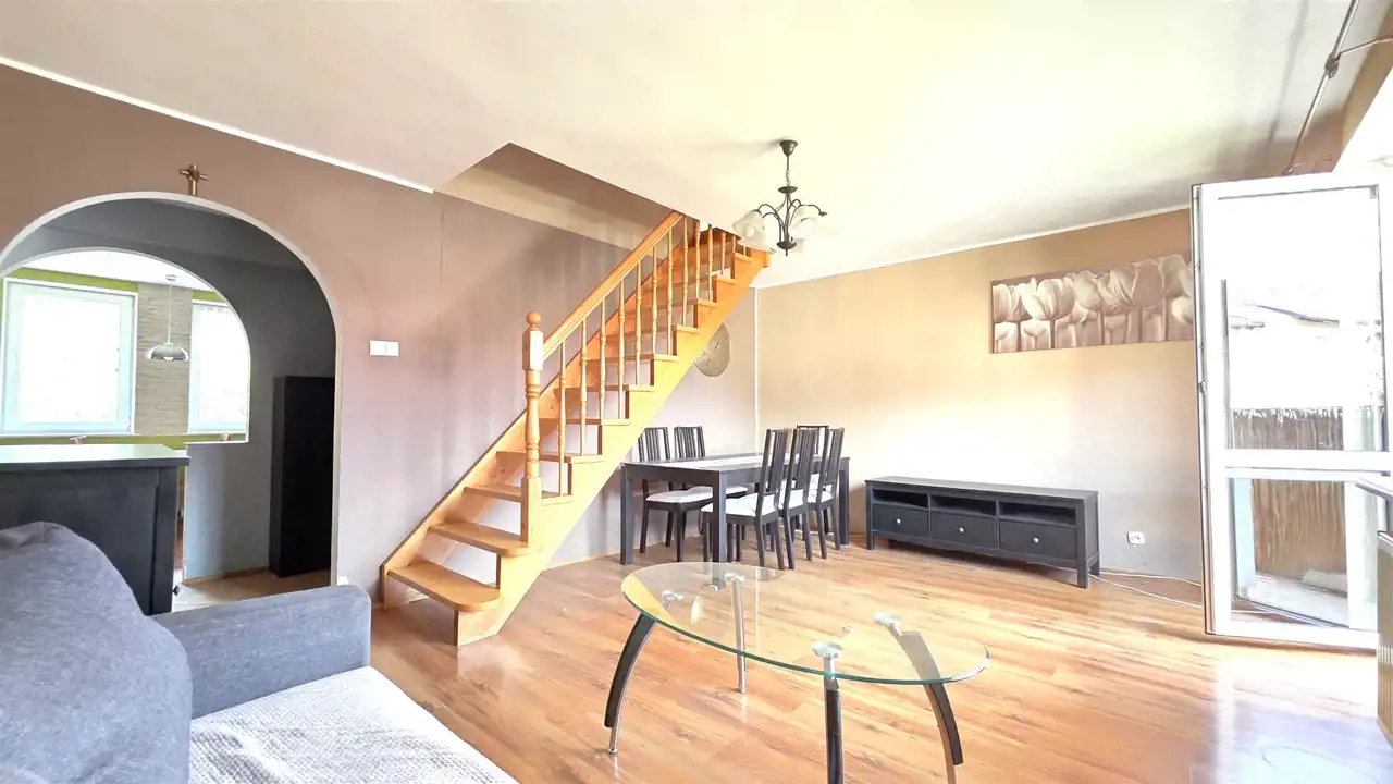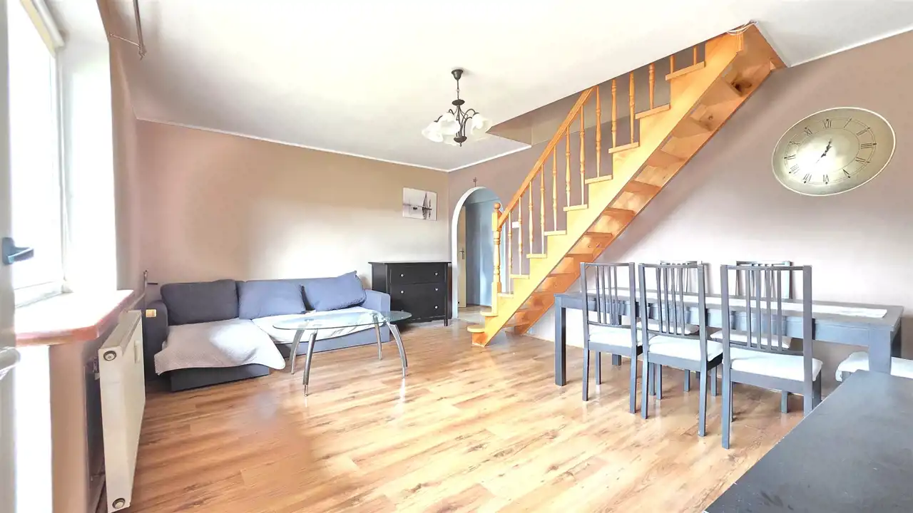 Komfortowy, dwupoziomowy apartament o powierzchni użytkowej 87,34m2, z balkonem, zlokalizowany na spokojnym osiedlu, położony w Lęborku przy ulicy Marusarzówny (opodal basenu "Rafa" oraz stadionu miejskiego). Lokal usytuowany jest na trzecim piętrze trzypiętrowego bloku, po remoncie elewacji i dociepleniu co sprawia, że jest bardzo ciepły, energooszczędny. Mieszkanie stanowi odrębną nieruchomość, nie wymaga natychmiastowego wkładu finansowego, można od razu zamieszkać, a z czasem aranżować pod swój gust. Składa się z dwóch kondygnacji. W skład pierwszej wchodzi przedpokój, aneks kuchenny połączony z jadalnią, sypialnia, pokój dzienny z wyjściem na balkon oraz schodami prowadzącymi na drugą kondygnację, na której znajdują się dwa pokoje. Pierwsza kondygnacja ogrzewana jest z sieci miejskiej (centralne ogrzewanie), natomiast druga kondygnacja posiada ogrzewanie elektryczne. Do mieszkania przynależy piwnica (10m2). Koło budynku znajdują się miejsca parkingowe, na obszernym podwórku umiejscowiony jest bezpieczny plac zabaw dla dzieci widoczny z okna, a opodal znajdują się instytucje usługowo-handlowe, sklepy wielkopowierzchniowe, stadion, szkoła, przedszkole i kościół. Całość prezentuje się bardzo dobrze. Ze względu na położenie - cicha spokojna okolica, w otulinie lasu, dobrze skomunikowane osiedle (3 linie autobusowe) i w/w atuty oraz bliskość ekspresowej drogi krajowej S6, łączącej Trójmiasto - Szczecin (w chwili obecnej dojazd do Gdyni to tylko około 35 min, a po oddaniu odcinka Leśnice - Bożepole Wielkie dojazd do Gdyni skróci się do ok 25 minut), oferta jest godna polecenia.