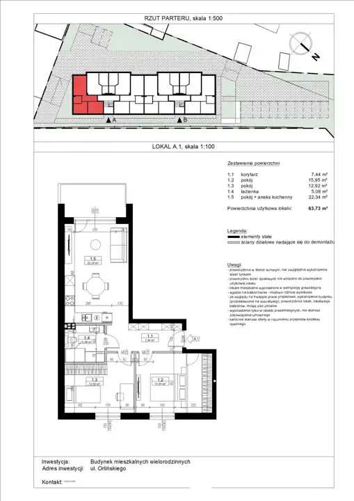 Na lokal o powierzchni 63,73m2 składa się: