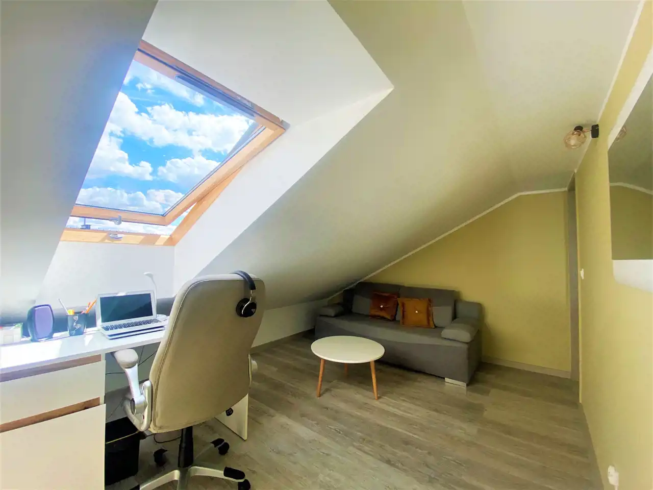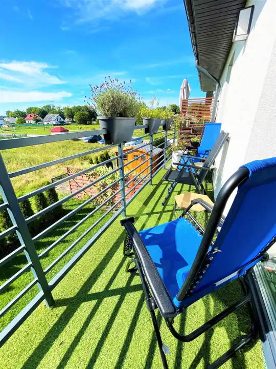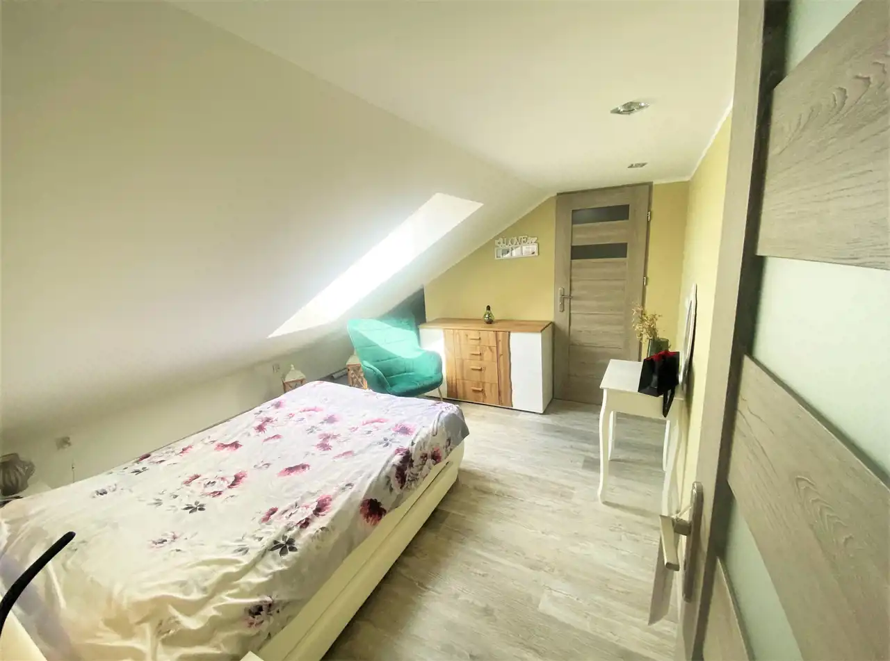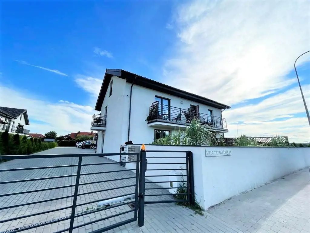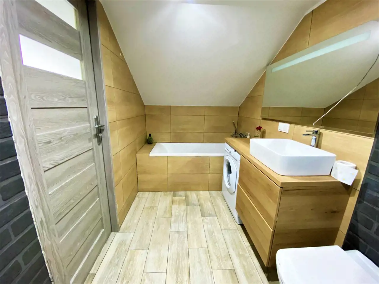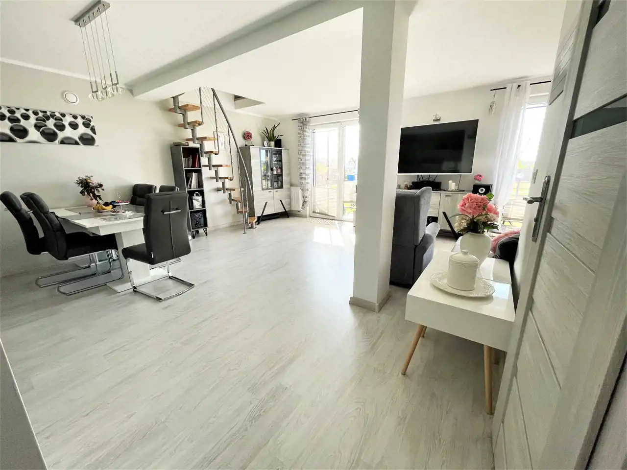 Atrakcyjny nowoczesny apartament dwupoziomowy (z zaadaptowanym poddaszem) w zabudowie szeregowej o powierzchni całkowitej około 88m2, użytkowej 42,33m2, położony blisko centrum Lęborka (3min. samochodem) przy ulicy Tatrzańskiej. Usytuowany na nowo powstałym, monitorowanym, bezpiecznym ogrodzonym osiedlu z bramą na pilota i miejscem parkingowym (przypisanym na wyłączność). Lokal usytuowany jest na pierwszym piętrze (środkowy co powoduje małą utratę ciepła) w skład, którego wchodzi: przedpokój (2,2m2), salon z aneksem kuchennym ze sprzętem AGD (38 m2) z wyjściem na balkon(8m2) i łazienka z wc i prysznicem (3,3m2). Na poddasze prowadzą stalowo drewniane schody modułowe, gdzie znajdują się dwie sypialnie, garderoba i druga łazienka z wc i wanną. Ze względu na standard, niski czynsz, oraz położenie z widokiem na łąki i zachód słońca oferta jest godna polecenia.
