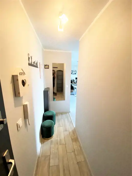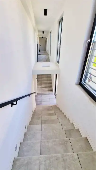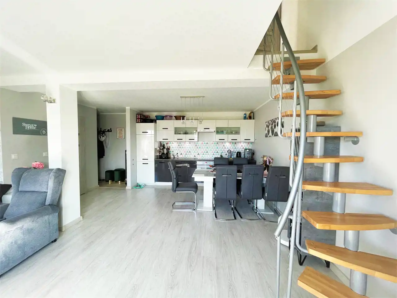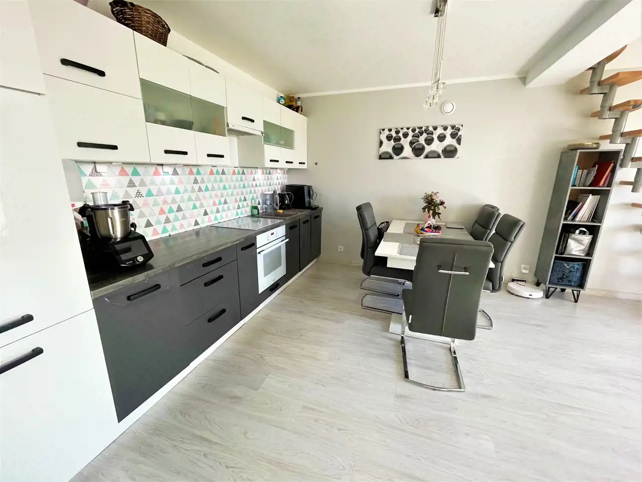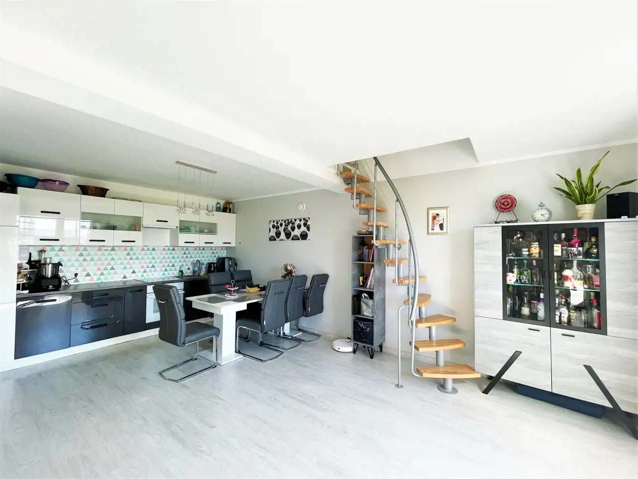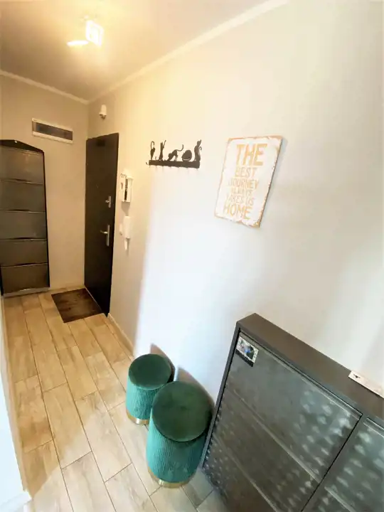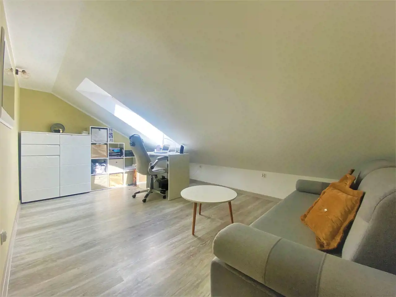 Atrakcyjny nowoczesny apartament dwupoziomowy (z zaadaptowanym poddaszem) w zabudowie szeregowej o powierzchni całkowitej około 88m2, użytkowej 42,33m2, położony blisko centrum Lęborka (3min. samochodem) przy ulicy Tatrzańskiej. Usytuowany na nowo powstałym, monitorowanym, bezpiecznym ogrodzonym osiedlu z bramą na pilota i miejscem parkingowym (przypisanym na wyłączność). Lokal usytuowany jest na pierwszym piętrze (środkowy co powoduje małą utratę ciepła) w skład, którego wchodzi: przedpokój (2,2m2), salon z aneksem kuchennym ze sprzętem AGD (38 m2) z wyjściem na balkon(8m2) i łazienka z wc i prysznicem (3,3m2). Na poddasze prowadzą stalowo drewniane schody modułowe, gdzie znajdują się dwie sypialnie, garderoba i druga łazienka z wc i wanną. Ze względu na standard, niski czynsz, oraz położenie z widokiem na łąki i zachód słońca oferta jest godna polecenia.