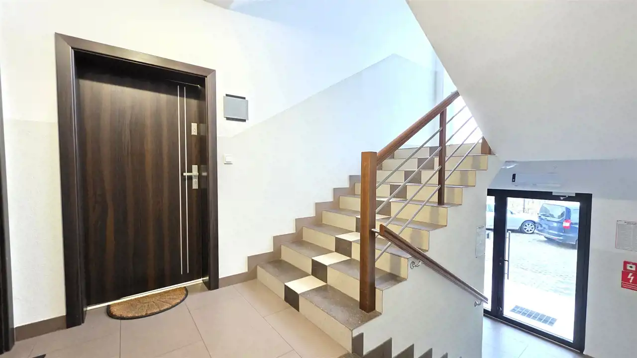 Nowoczesny apartament z balkonem, o powierzchni 45,67m2 położony na wysokim parterze trzypiętrowego bloku, zlokalizowany w Lęborku na ul. Legionów Polskich (vis-à-vis Centrum Medycznego "Legionów"). Lokal składa się z przedpokoju, widnego pokoju dziennego połączonego z aneksem kuchennym i wyjściem na balkon, sypialni oraz łazienki z WC i prysznicem. Do mieszkania przynależy piwnica (3,10m2) oraz miejsce parkingowe. Mieszkanie jest po generalnym remoncie - wymienione zostały wszystkie instalacje (elektryczne, hydrauliczne), okna (PCV), drzwi zewnętrzne, wewnętrzne oraz podłogi. Nieruchomość znajduje się w stosunkowo nowym budynku, wykonanym nowoczesną technologią gwarantującą wysoką energooszczędność, czyniąc go jednocześnie eleganckim z zewnątrz, jak i wewnątrz, dbając o jego maksymalną funkcjonalność, komfort i wygodę mieszkańców.