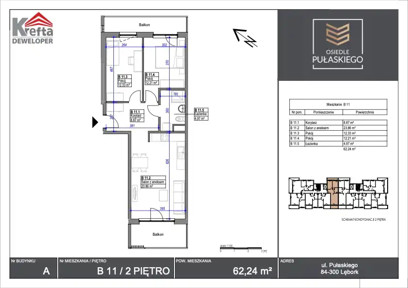 Osiedle Pułaskiego w Lęborku – Nowoczesne Mieszkania 2- i 3-Pokojowe od 43 do 63 m²